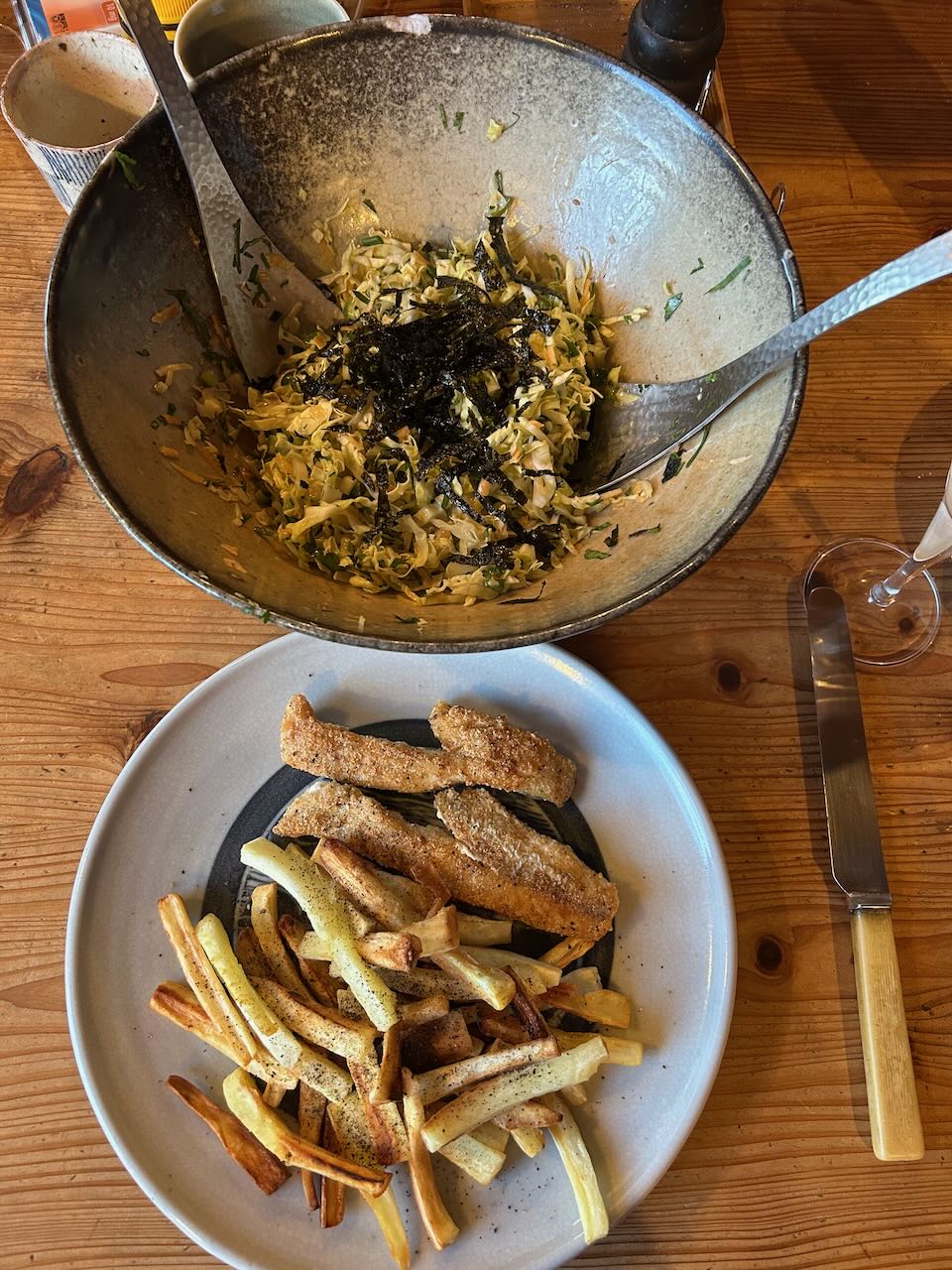 The veggie garden is still very productive. Fish and parsnip chips with a Japanese inspired cabbage salad. Oka-nomiyaki, an Australian version of Japanese cabbage pancake. Baked mixed vegetables etc.