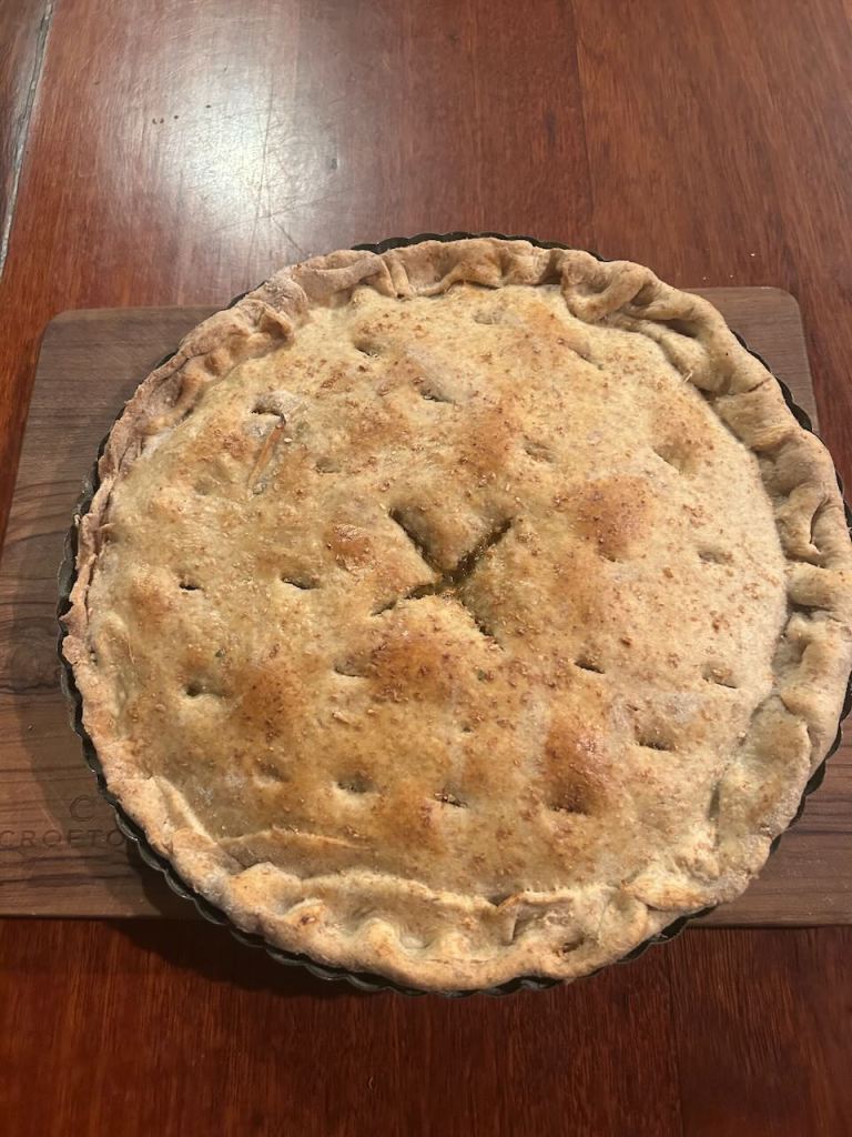 In the kitchen, I’ve been harvesting lots of leaks, and making chicken and leak pie. I’ve got quite quick at knocking up small batches of wholemeal pastry for pie crusts and pizza bases.
