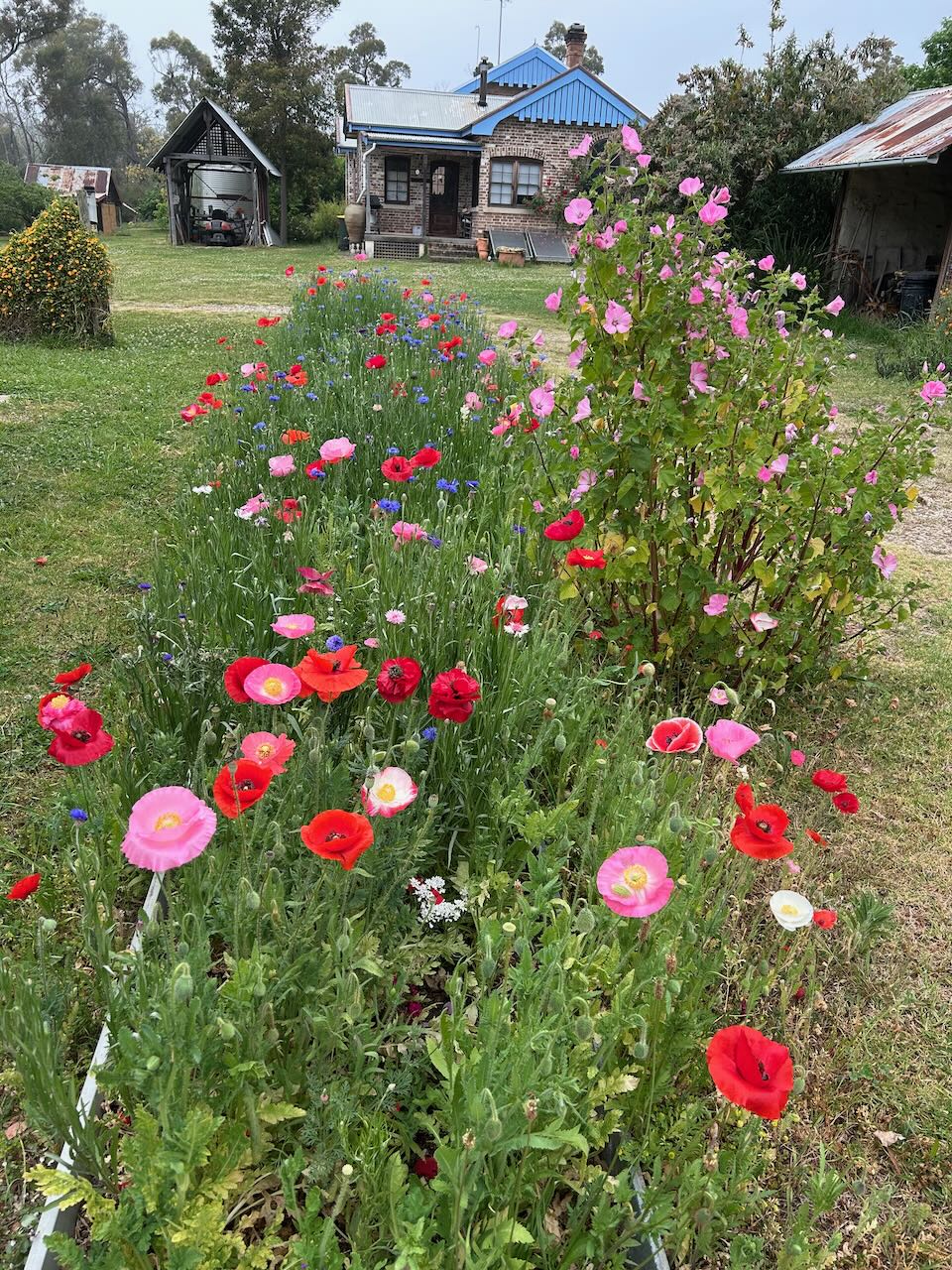 Although it’s still spring, it seems like summer has been with us here in Balmoral Village for the past 6 weeks and more. The lush green spring growth is long gone. It’s been hot and dry, interspersed with cold, blustery, windy days. The net effect has been to dry everything out. The paddocks and lawn around the house have browned off. The soil in the vegetable garden has dried out to the point of shrinking, and starting to crack open in the places where we are not watering the nascent, emerging seedlings, destined to become our summer food source. We keep the soil moist around the seedlings and let the other areas stay dry – until I need that spot to plant more vegetables.