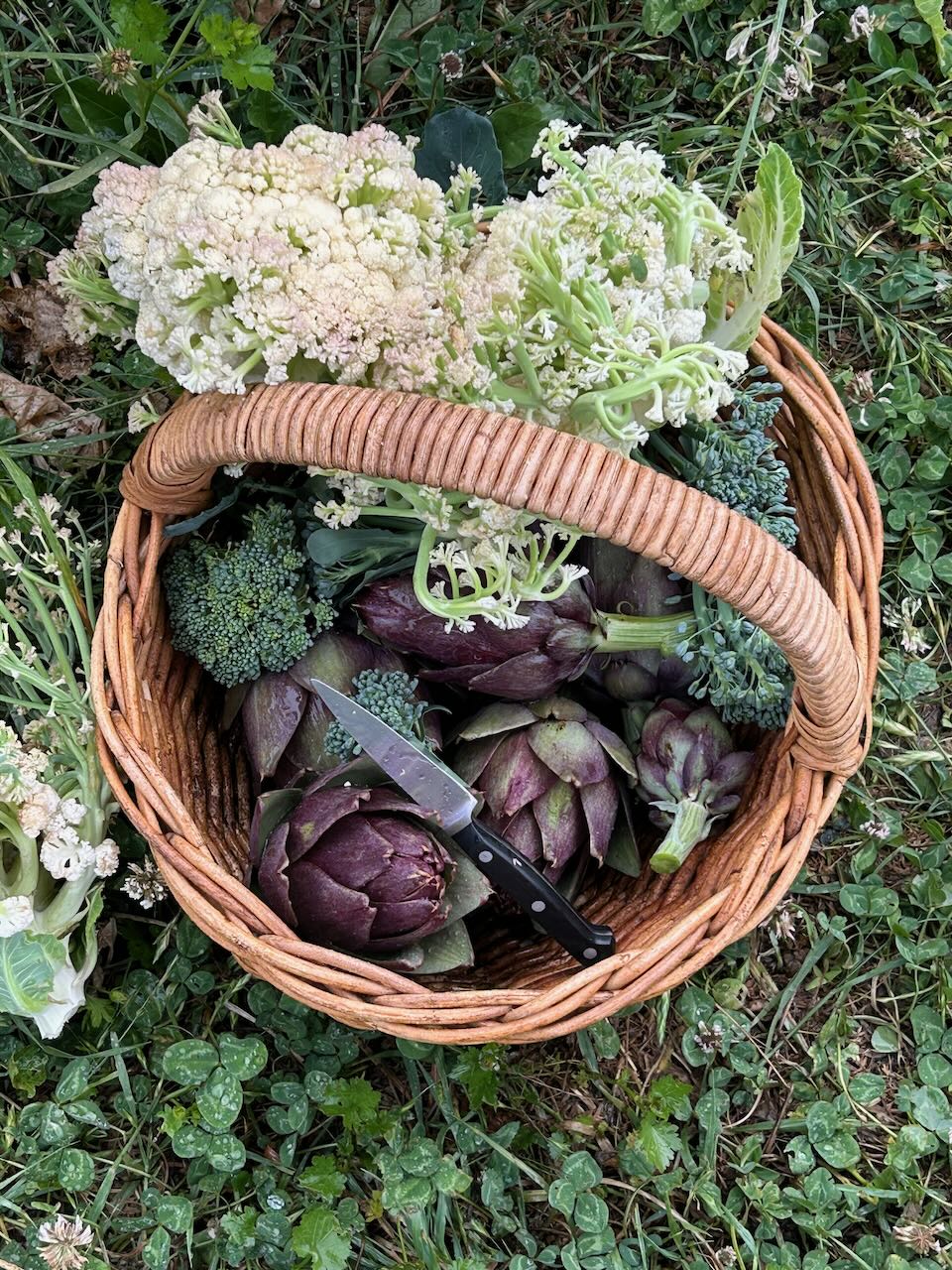 We have picked the last of the artichokes and cauliflowers. I made a vegetable pasta with the artichoke hearts and as the cauliflower was so far gone. I mashed it up and used it as vegetable filling to bulk out the sauce with last summer’s tomato passata.
