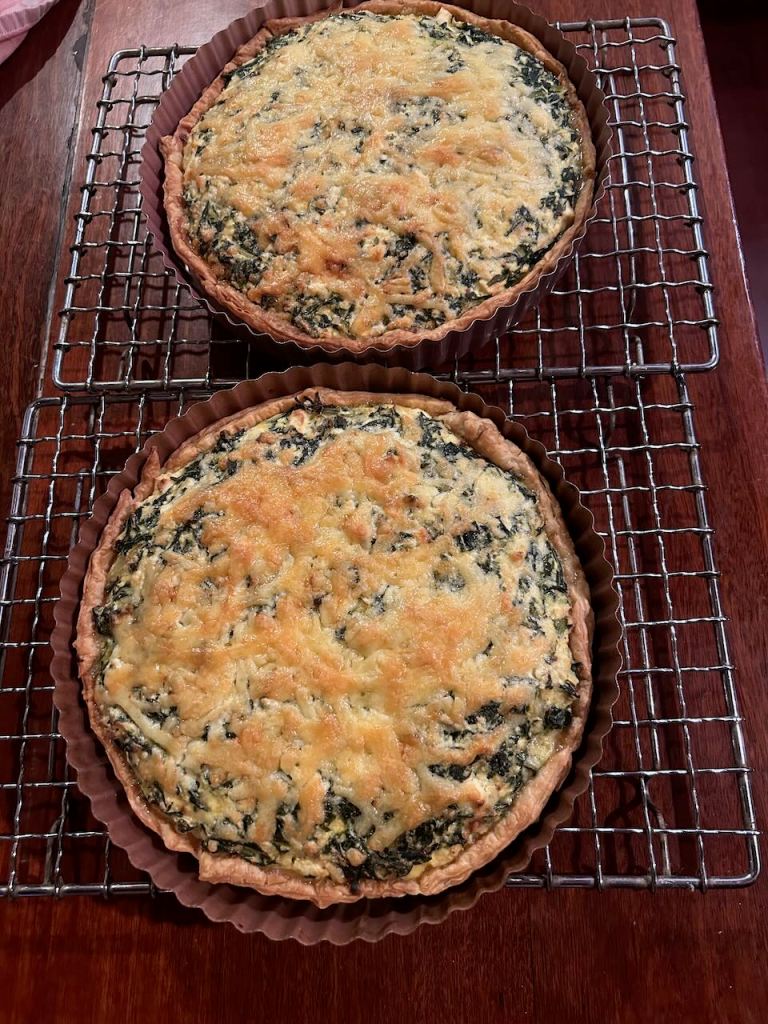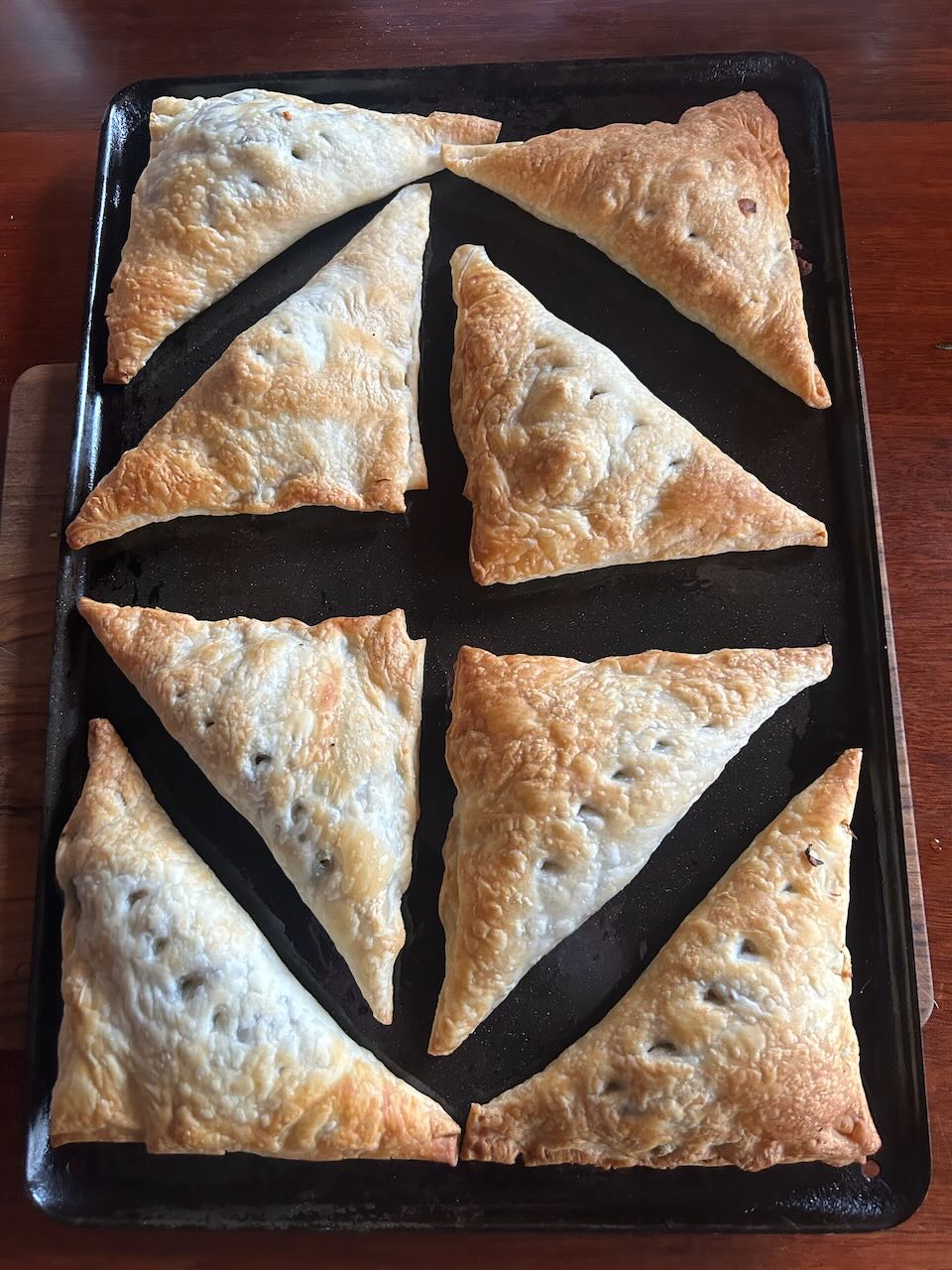 We also have plenty of silver beet/chard at the moment, although it is starting to bolt with the longer days. I have planted more seeds for a follow-on crop. I have been making spanakopita-like spinach and cheese triangles, or spanapotterka as I like to call them, or sometimes whole pies with a similar filling. It’s a great way to use up our excess of leafy greens, as they bolt away in the heat, and maximise our return from them before they are all gone. but it does need the ricotta, fetta, blue cheese and herbs mix to make it special. Plus a light touch of chilli.