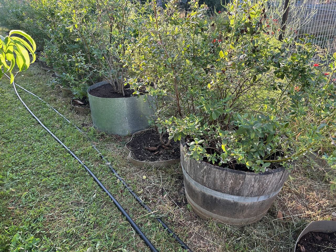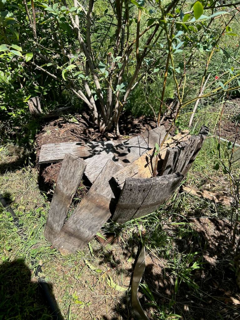 While in the garden, I noticed that one of the ancient wooden barrels that I bought 3rd, or even 4th hand, some 30 years ago, have finally rotted away to the point of collapsing. The staves have rotted away from the inside with the constant wetting and drying as we water the blueberries that we are growing in them.