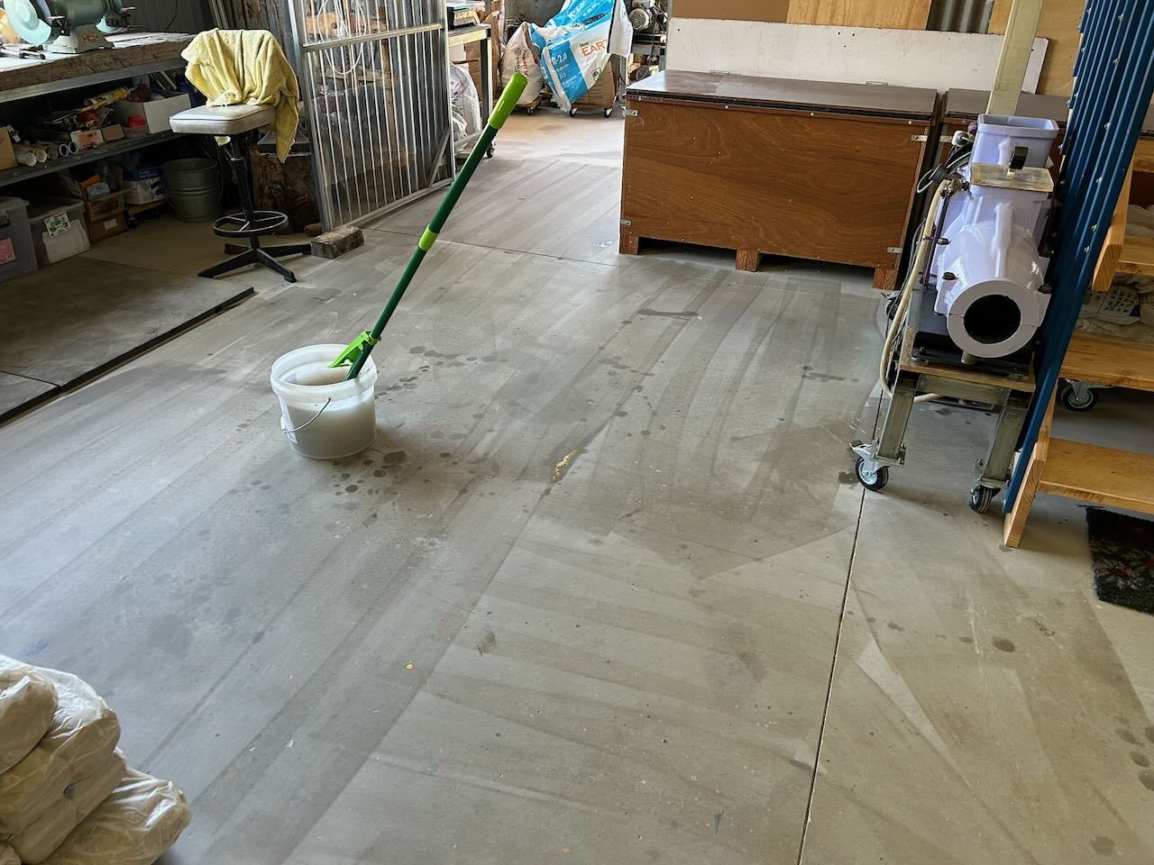 After all the clay is processed, pugged twice and then bagged and put to bed, everything is scrubbed down and the floor is mopped.