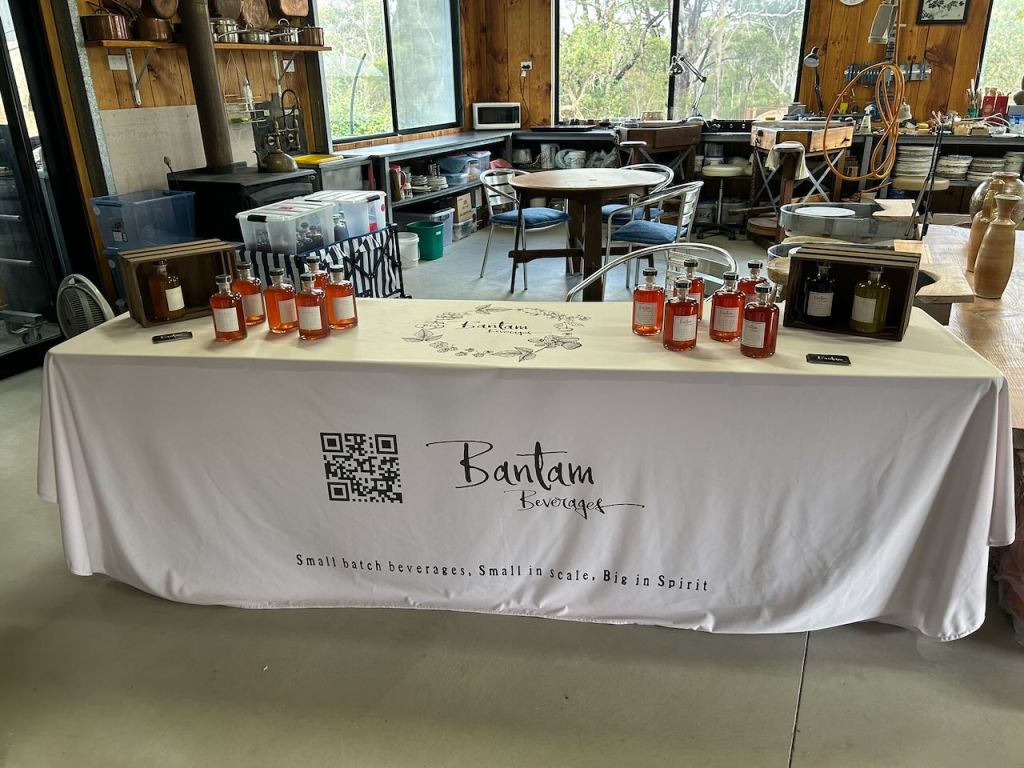 Geordie has called his company, ‘Bantam Beverages’, small batch, seasonal drinks. He was selling them here during the Arts trail – Open Studio sale. We sold out of the strawberry and basil, and only had a few bottles of the lemon mix left. We are helping make more stock now, so he will have more bottles to sell on the special, one day only, half price sale on the Sunday 14th of December.