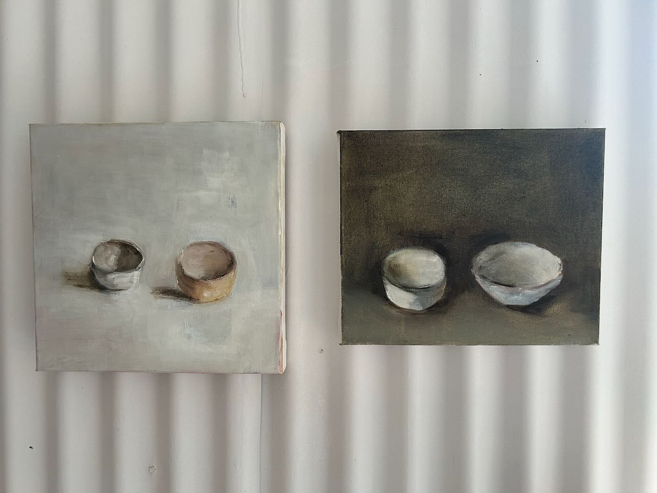 Roxanne’s beautiful and expressionistic paintings of pots.