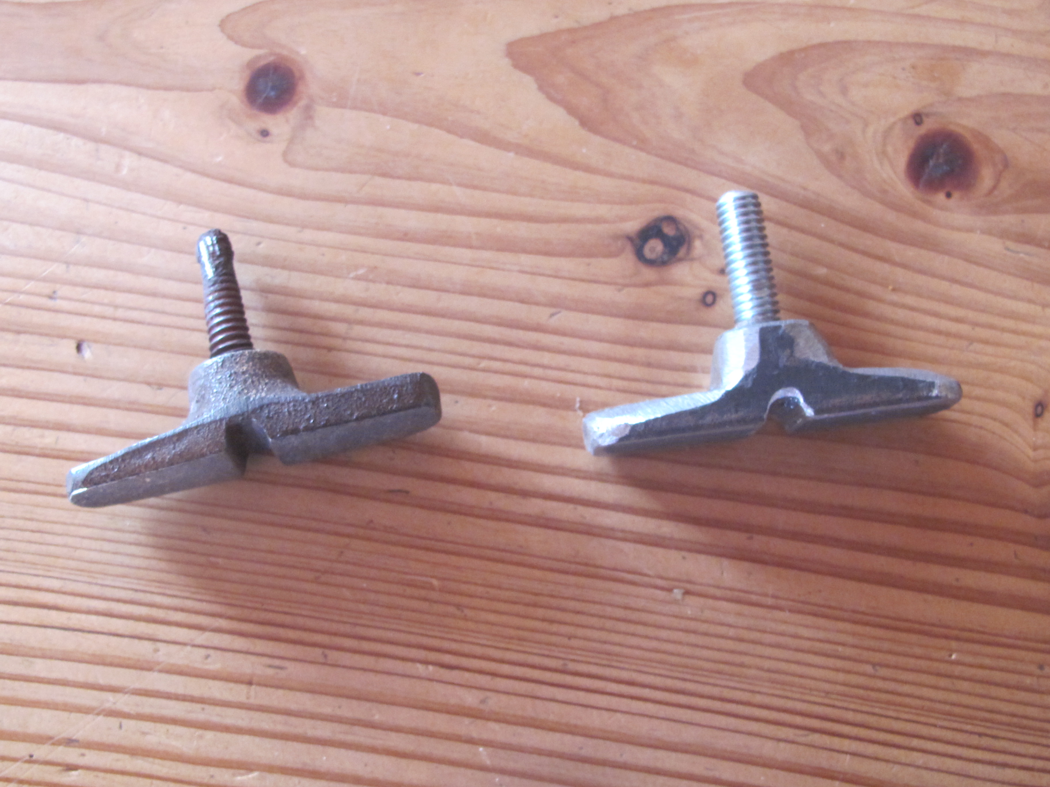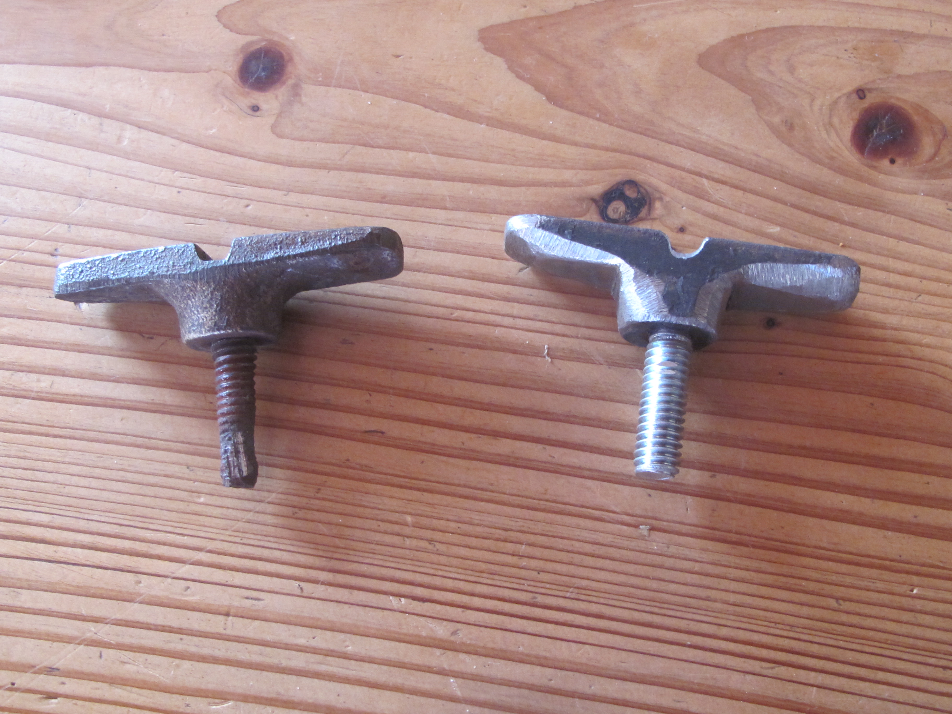 Now after infinitesimal turns of the screw, it has completely worn the threads off the shaft of the catch, to the point that it won’t catch anymore. If the firebox door can’t be reliably kept closed, we can’t risk burning wood in it at high temperature in a timber floored kitchen.