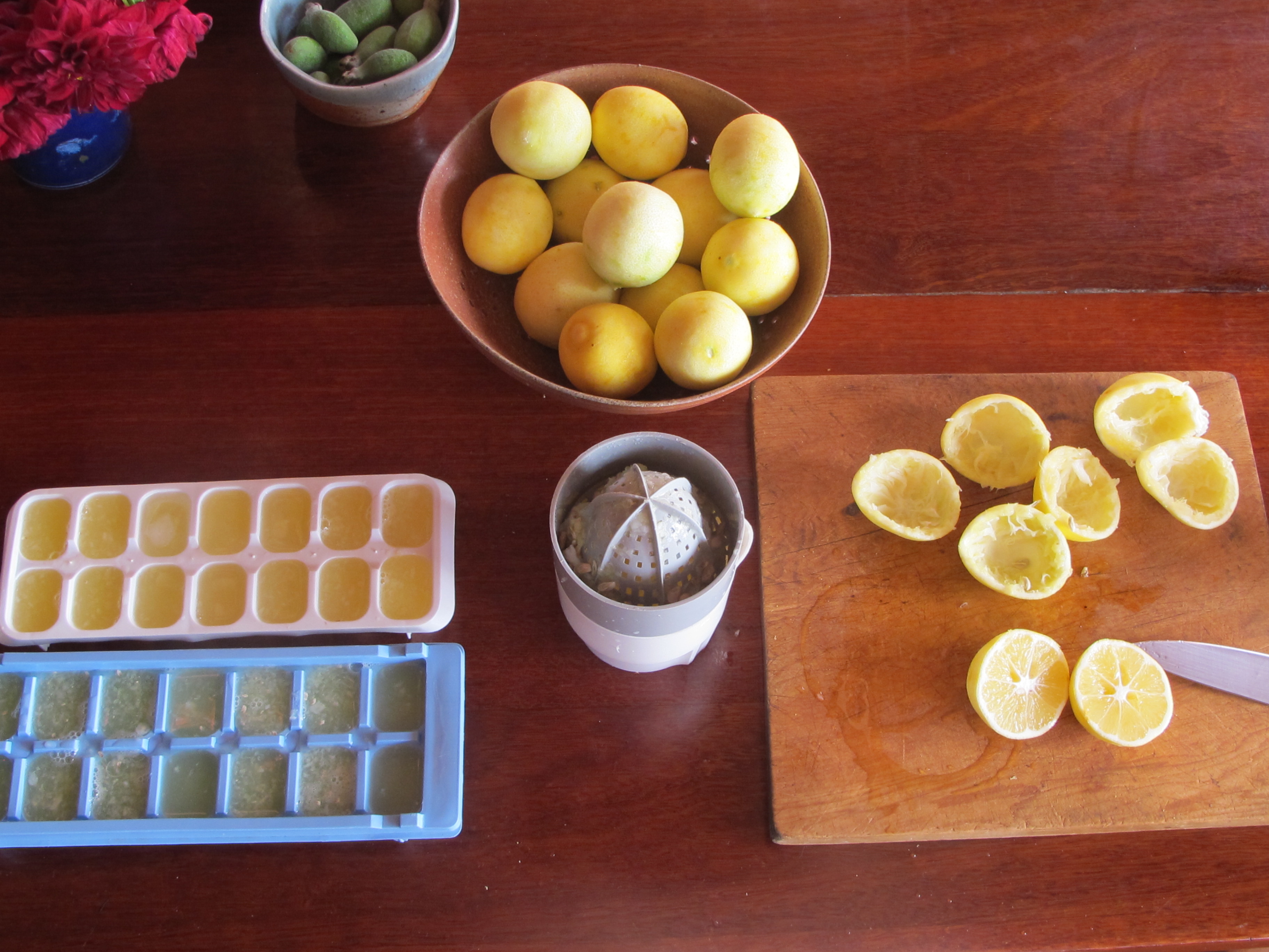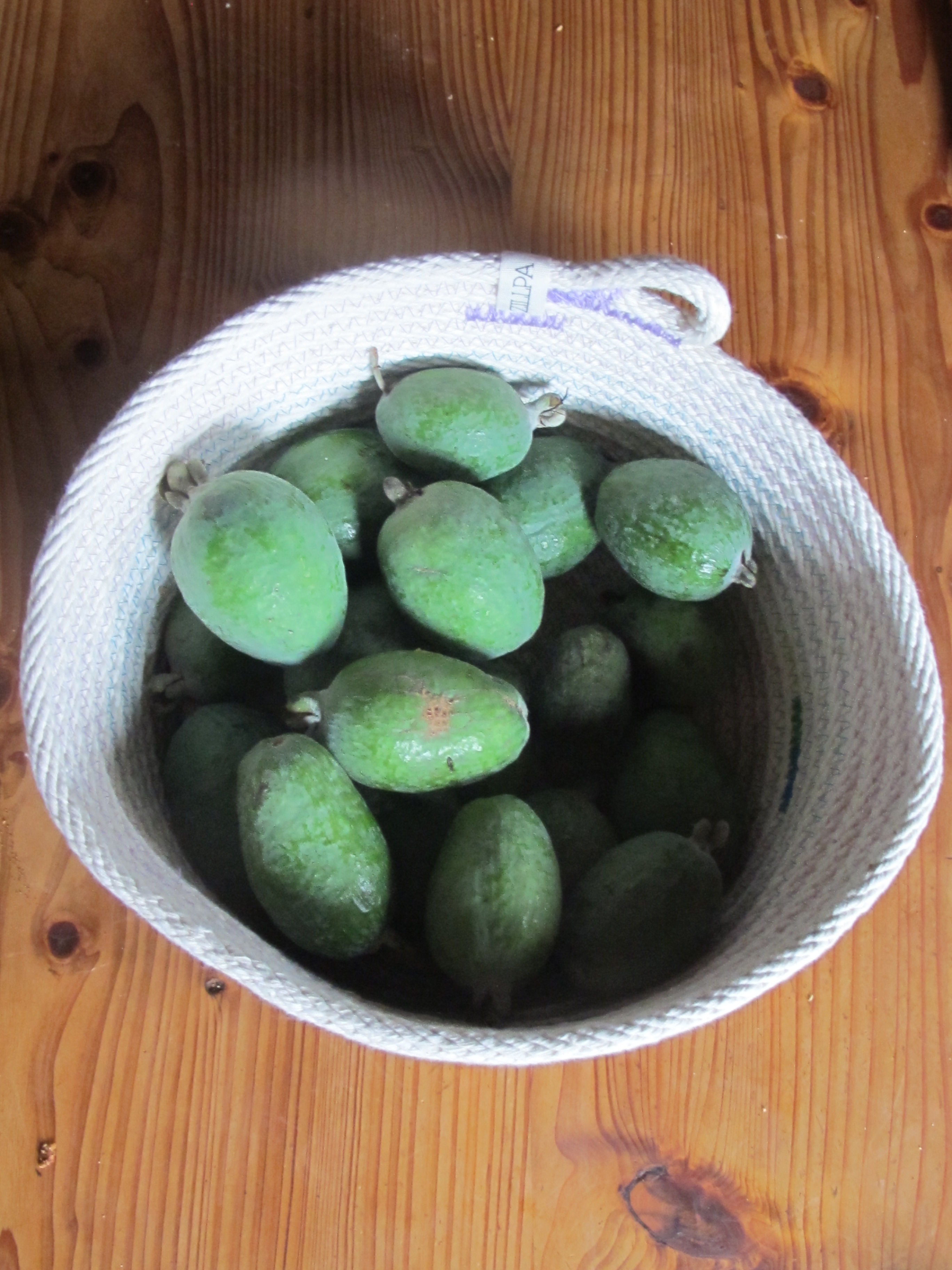 We’ve also been collecting the pine mushrooms, the saffron-milk-caps, from under the pine trees, for our risotto . They appear with the warm weather after the rain. We have also been harvesting feijoas for our breakfast fruit. They are full-on ripe at this time of year. And starting to fall from the tree. As we have far too many at this time of year to eat them all fresh every day. The Lovely has started to use them to make a very nice, moist feijoa fruit cake.