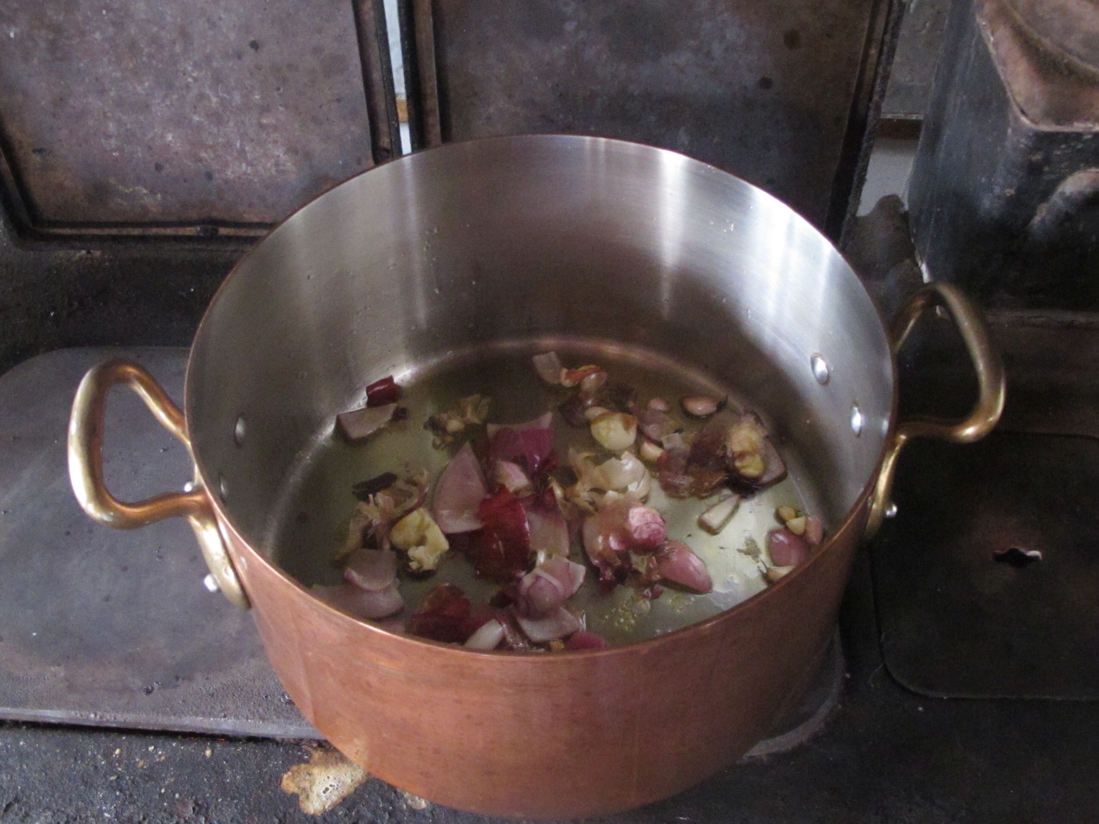 Our red-meat meal for this month, was lamb shanks. Browned in olive oil, onions and garlic, then simmered gently in one whole bottle of local red wine – merlot, and two large table-spoons full of marrow bone jelly stock. (see earlier email) Simmered down to 1/3rd its volume over an hour or so makes the most delicious and intense sauce and served with garden vegetables.