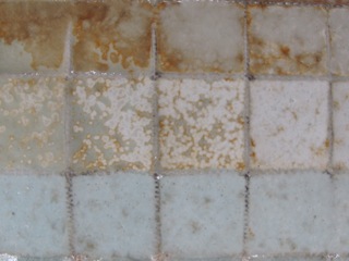 Wood ash and rock glaze tests, showing some interesting results with nice crystals
