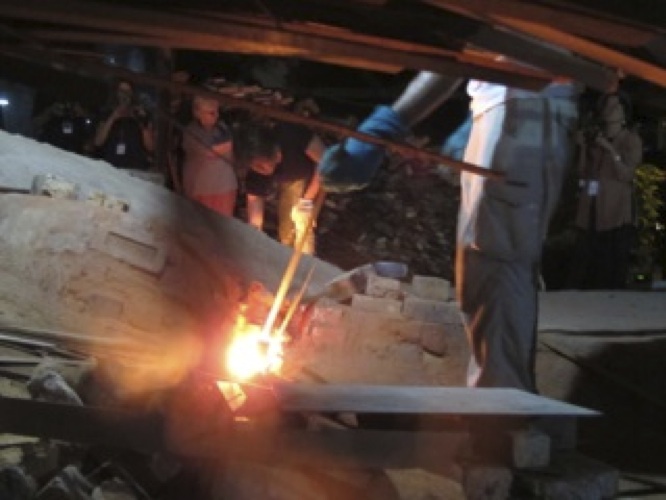 I need to crush all these samples down to very fine dust so as to be able to make glaze tests out of them. All I have to work with is one kitchen mortar and pestle made out of granite and a dozen helpers throughout the day. I will need more than this if we are to get it all done. Steven takes me to the village street markets, where we buy another 4 stone mortars and pestles. He has arranged to get a steel stamping tube mill welded up, to be used for primary crushing and it is there when we get back with the mortars and pestles. So we are all set to go.