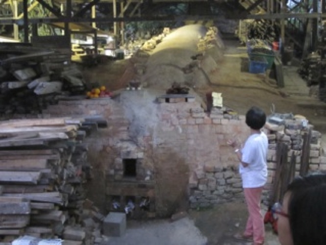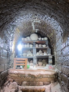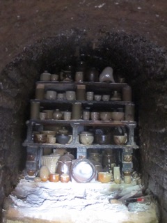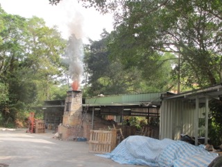 Once my bowls are turned, I put them back out in the sun to dry further. They are eventually packed directly into the huge dragon kiln and the firing is started a few hours later around dark, full of raw pots, just made that day, some still quite moist. The kiln is slowly steamed over-night and then, in the morning, when all the pots are quite dry, the firing is allowed to gain speed and more wood is introduced more often.