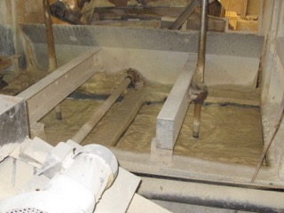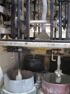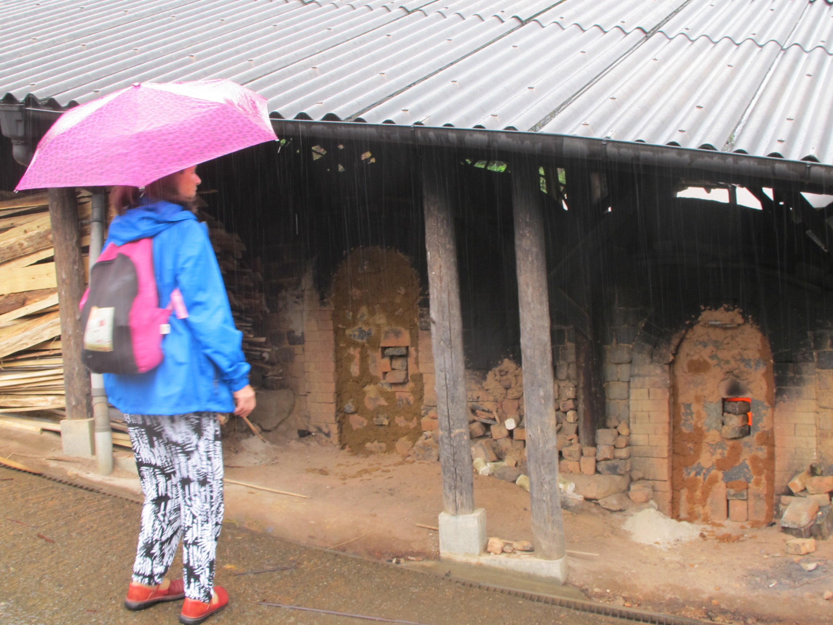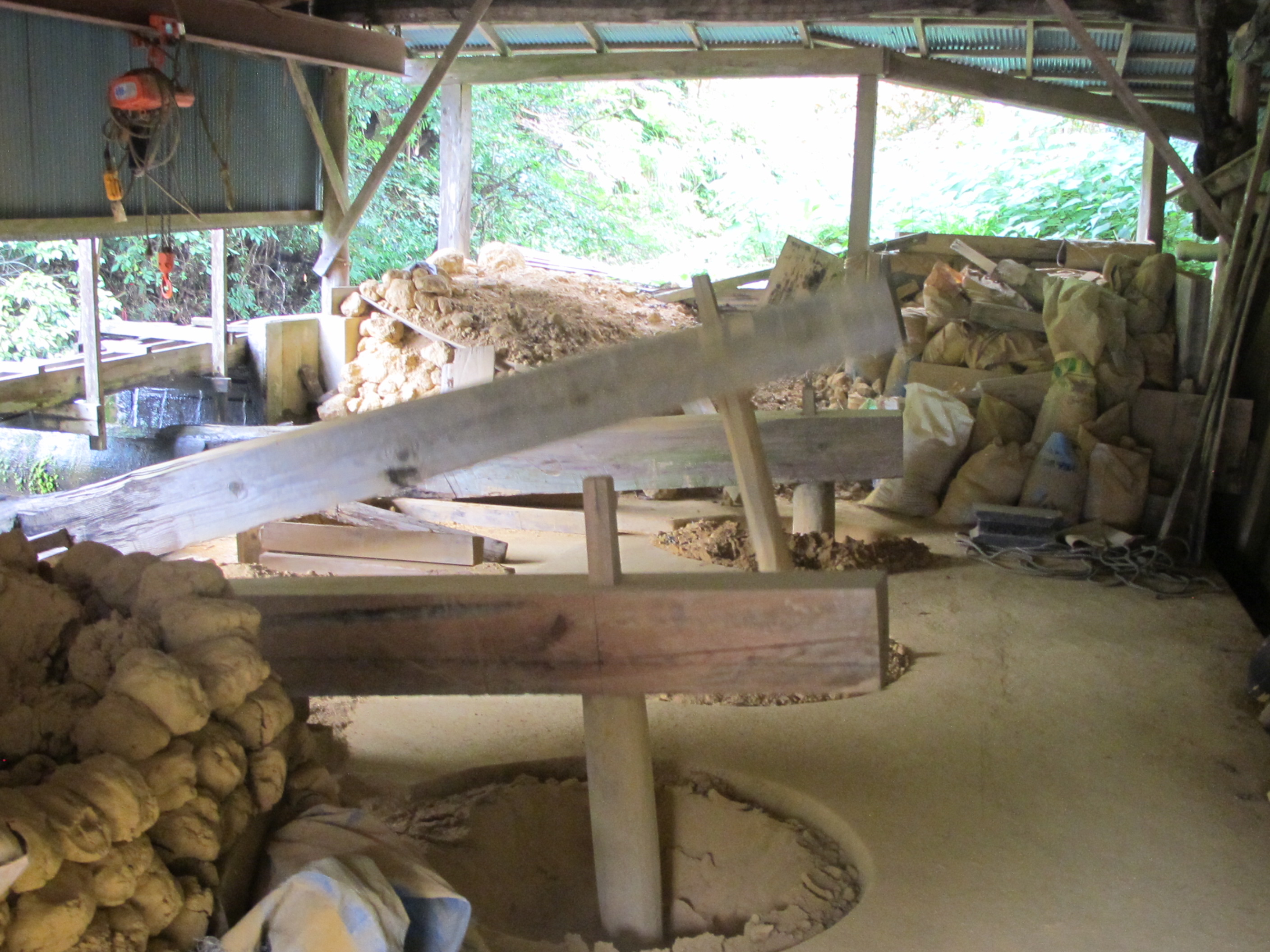 The clay that I’ve chosen is completely unprocessed, it is totally natural, yellow and sticky, straight from the ground. The ground that supported this venture for over a hundred years. It’s very soft and very gritty with huge chunks of organic matter and stones up to 10 mm dia or more. It is a little difficult to throw and to deal with. Probably better suited to making the old, large, thick jars, rather than small functional bowls as I am making, but I decide to give it a go and I persist. The alternative is to use clay imported from Australia. I didn’t come all this way for that. So I persist.
