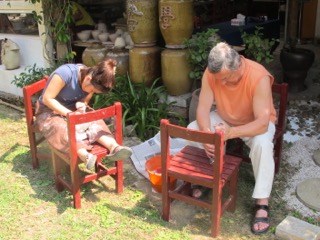 My other, or real, reason for being here is to make pots and to fill, pack and fire this Dragon Kiln. We are being hosted for some of the time at the Thow Kwang Dragon kiln Pottery. This is the last remaining working dragon kiln in Singapore. There is another kiln close by, but it closed down some years ago and is now rented out as workshop space to local artists. ‘The Thow Kwang Dragon Kiln Pottery Jungle’ is in a small patch of what used to be jungle up in the North West of the island.