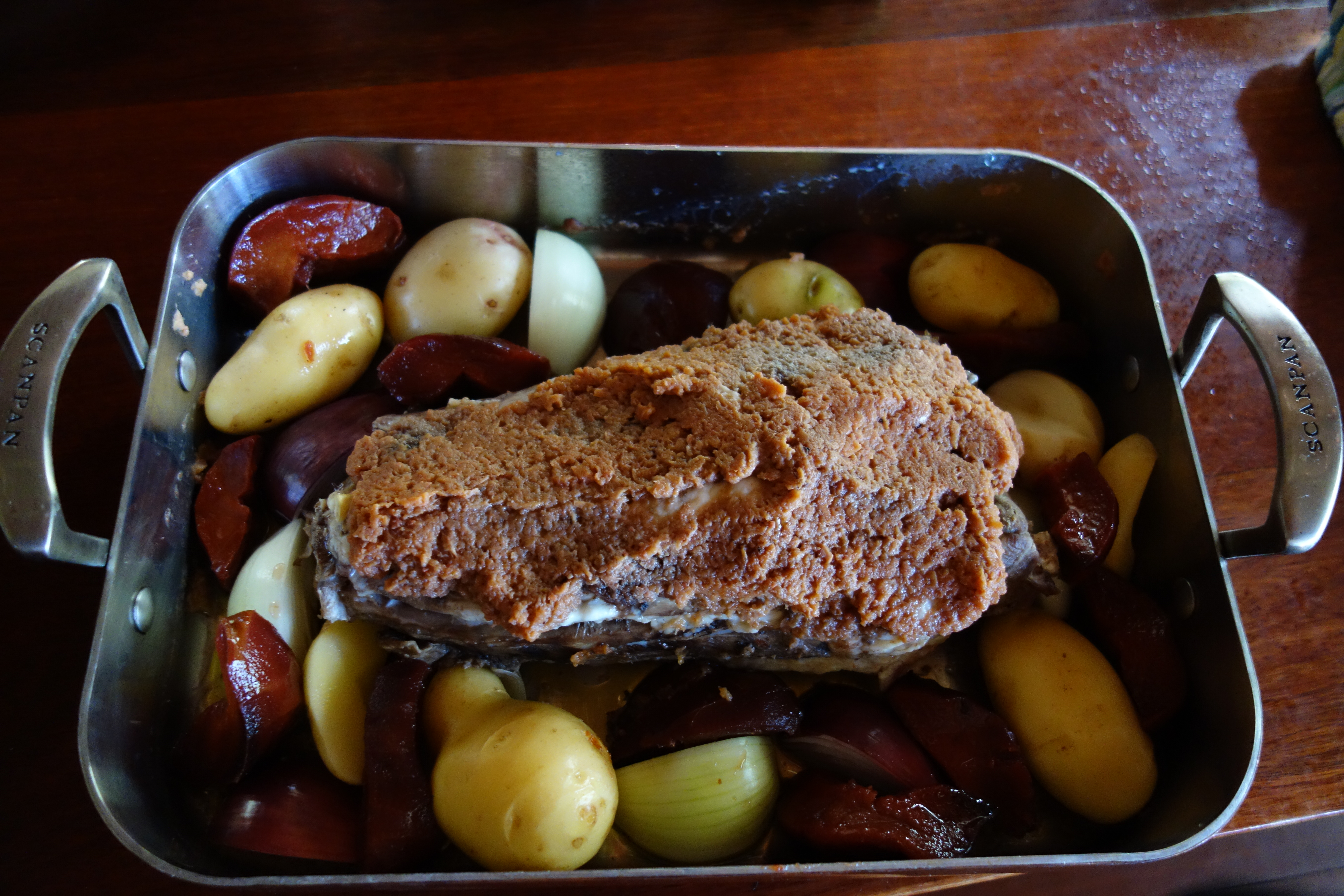 We decide to cook one of the last pieces of lamb that our son Geordie bought in the middle of the year. As he is a chef at a very prestigious restaurant with a couple of ‘hats’ rating. He will be cooking Xmas dinner for everyone else today. We will have our Xmas lunch with him tomorrow. This last piece of his lamb is the saddle with the eye fillets. Saving the best till last. This will be this months red meat meal. I simmer it very gently in a bottle of our home made quince cider along with a couple of our sliced onions. Put half a bottle of quince puree in the mix and spread the remaining half bottle of puree over the top of the saddle as a paste. After 1 1/2 hrs I drain it off and add a little of our local EV olive oil. I add a few of our newly lifted new season potatoes, a couple more onions and half a bottle of preserved baked, quartered quinces from last autumn. I bake this combo slowly for another 1 1/2 hrs. It’s a triumph of melt-in-your-mouth flavours. The twice baked quinces are amazing and the quince puree that has covered the lamb has kept it succulent and moist and amazingly flavoursome. We are very lucky people to be able to enjoy what would otherwise be an unaffordable meal. Janine steams some of our diced zucchinis with mint leaves. I go under the floor and into the wine cellar and retrieve a bottle of 1994 Wynns Coonawarra, John Riddoch, Cab sav. At 20 years old, it is amazingly spritely and still just a little bit tannic. It still has plenty of life left in it. I open it when we start cooking and it is very mellow and smooth, rich and complex and by the time the meal is ready, it is well breathed and a very good match. I still have one bottle left in the box. We’ll try it again in another couple of years.
