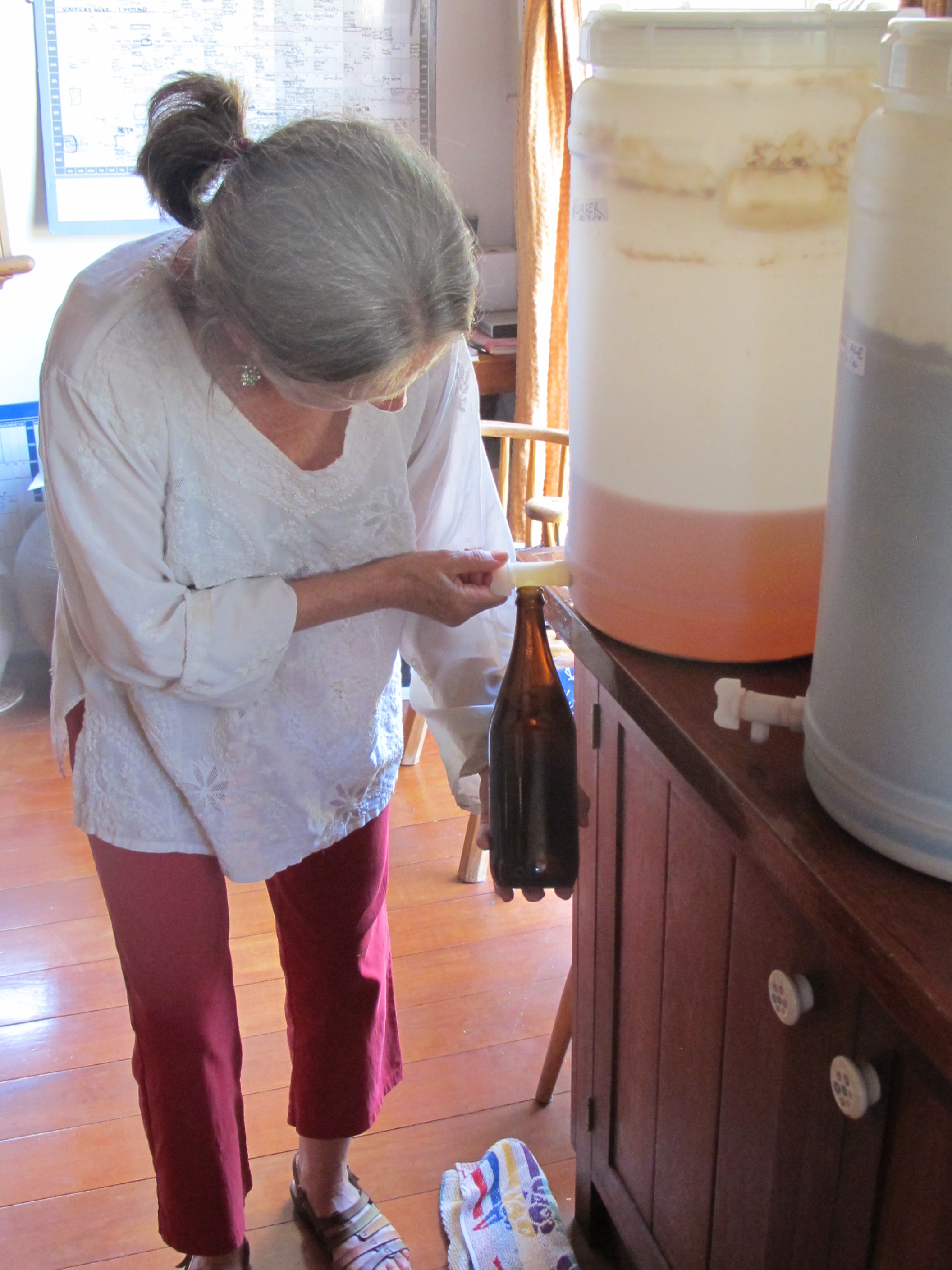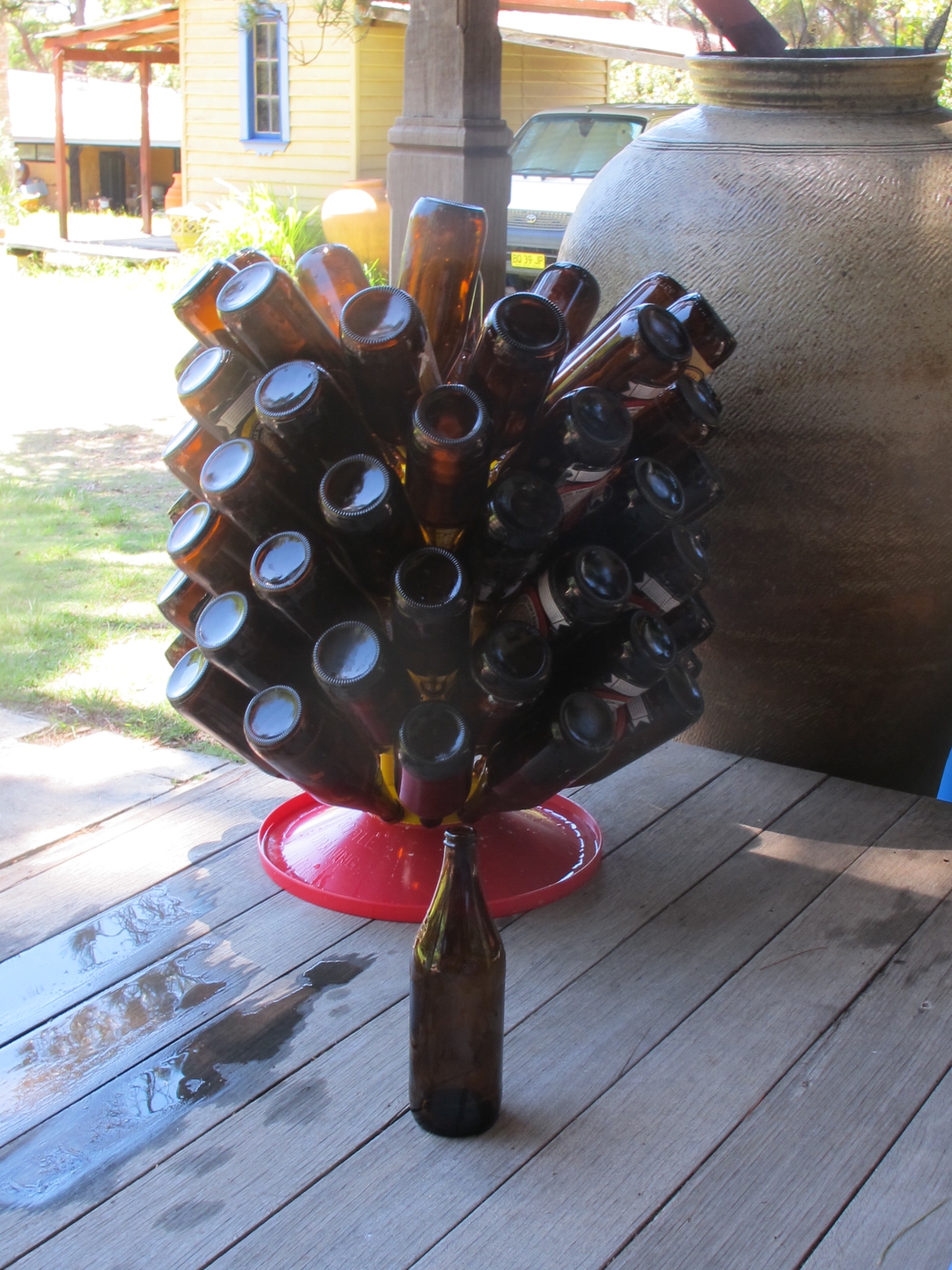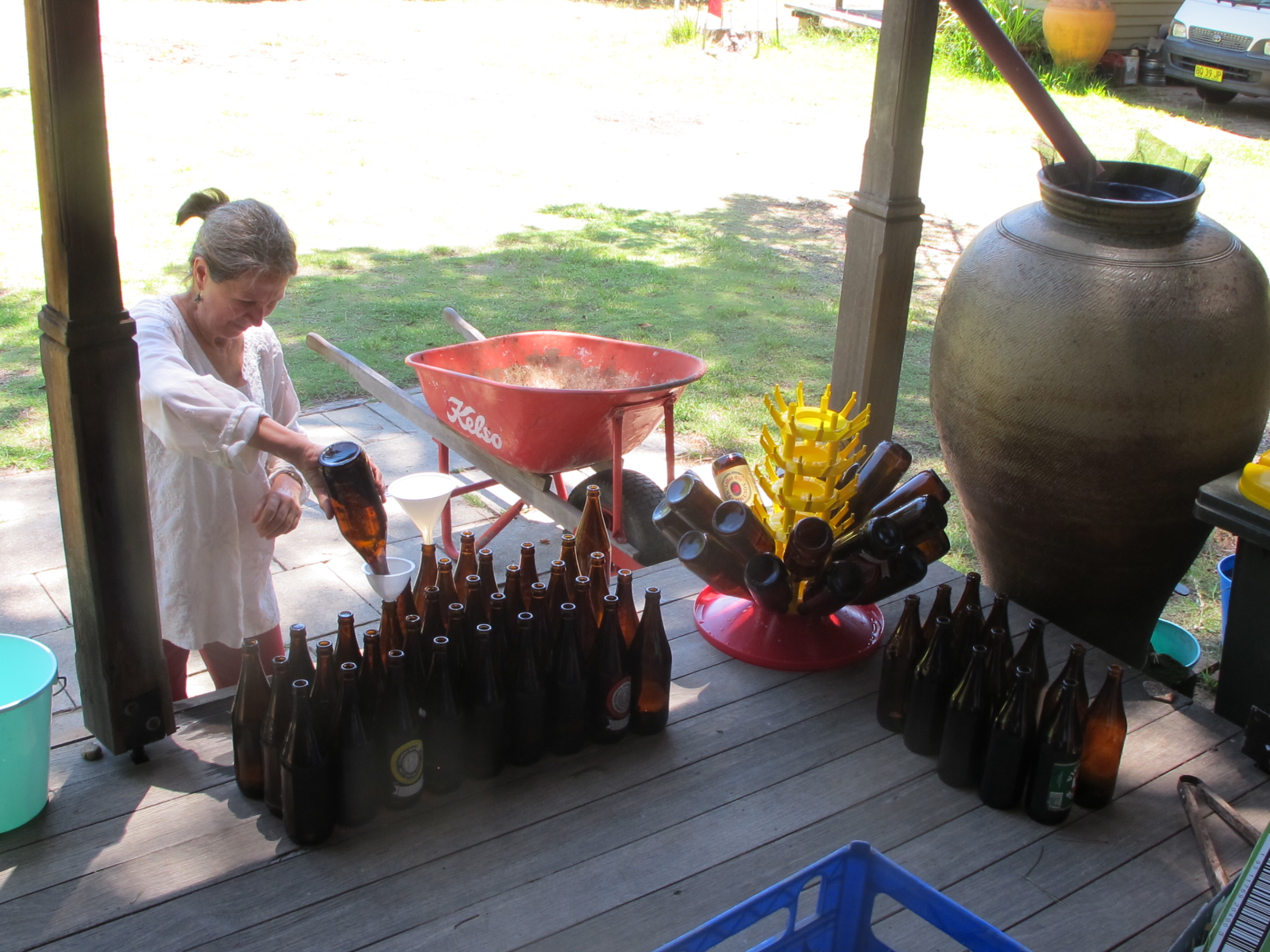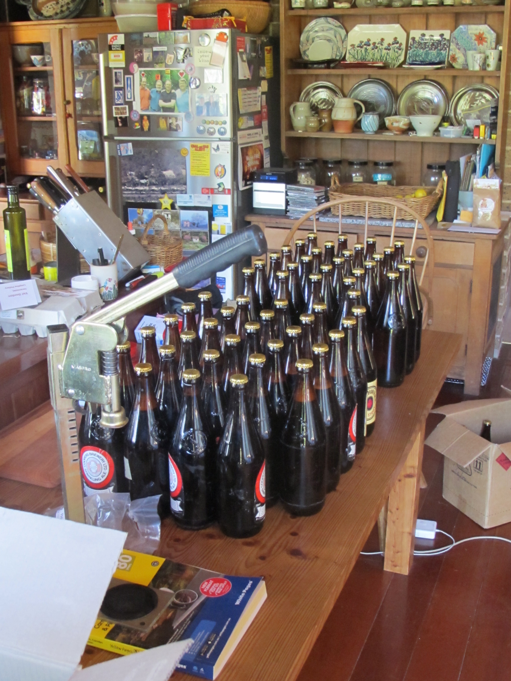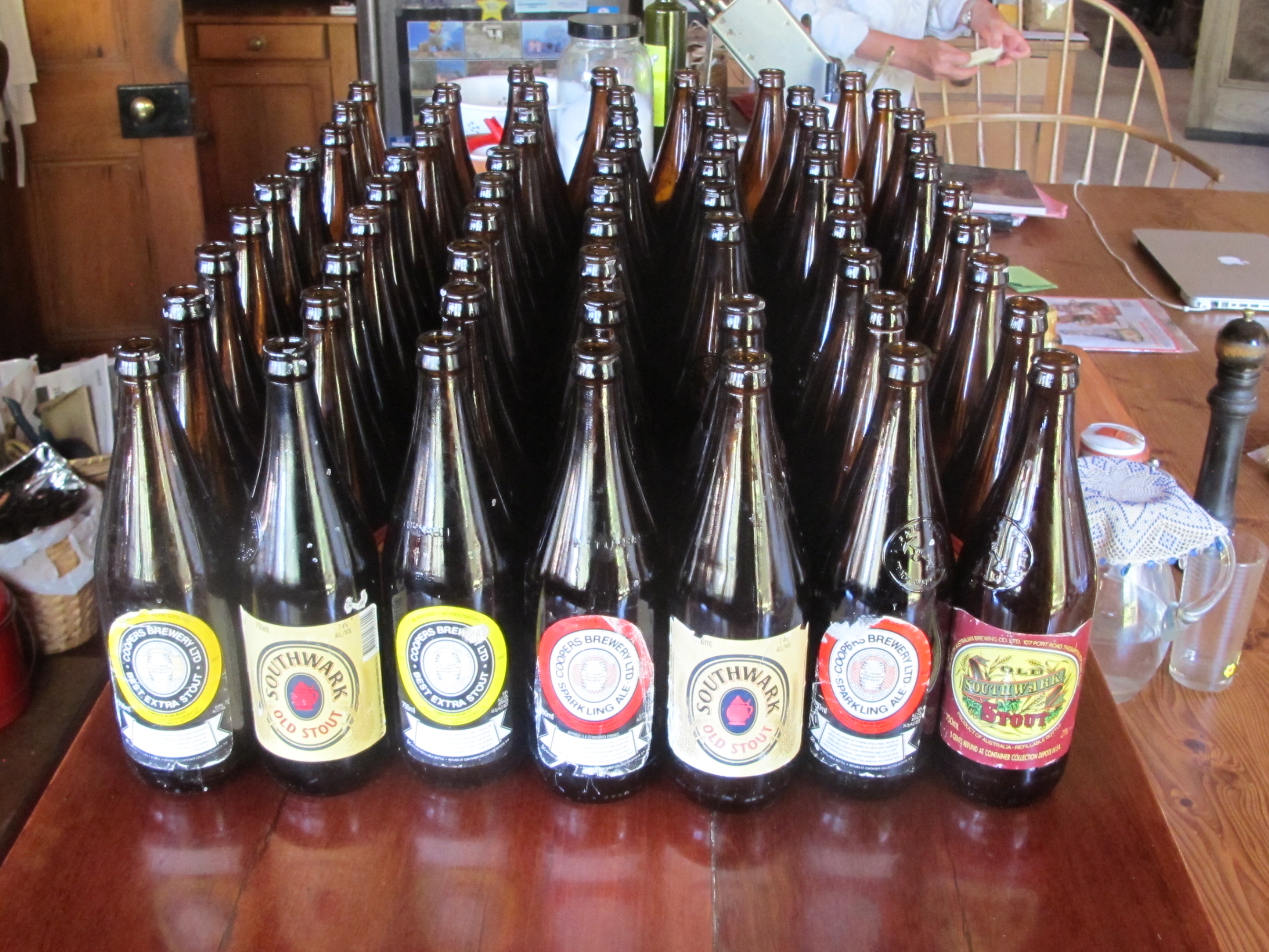 Yesterday, we spent a day washing, cleaning and sterilising 60 of our 30 year old beer bottles. There are some real antiques in this collection. Labels from breweries that you can’t buy any more. The old Coopers long necks were so solid and reliable. It takes longer to clean, sterilise and dry them than it does to fill and cap them. It takes us most of a leisurely day to get it all done and then clean everything up again and put all the gear back in its place. It’s a once a year job.