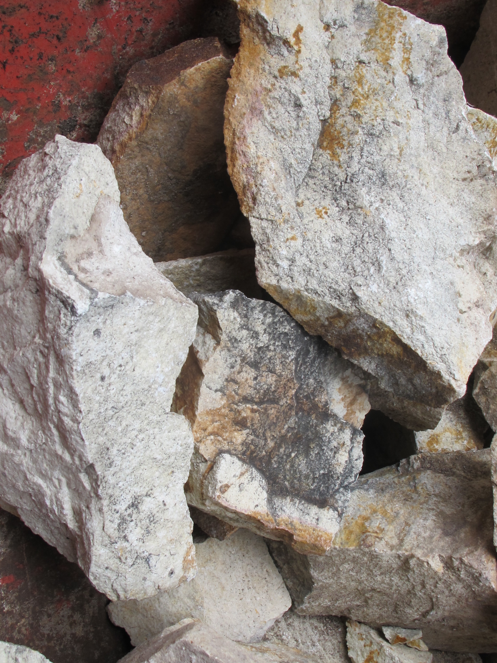 close-up of the stone fragments. They have the same black mould on the surface as the similar porcelain stone from Arita.