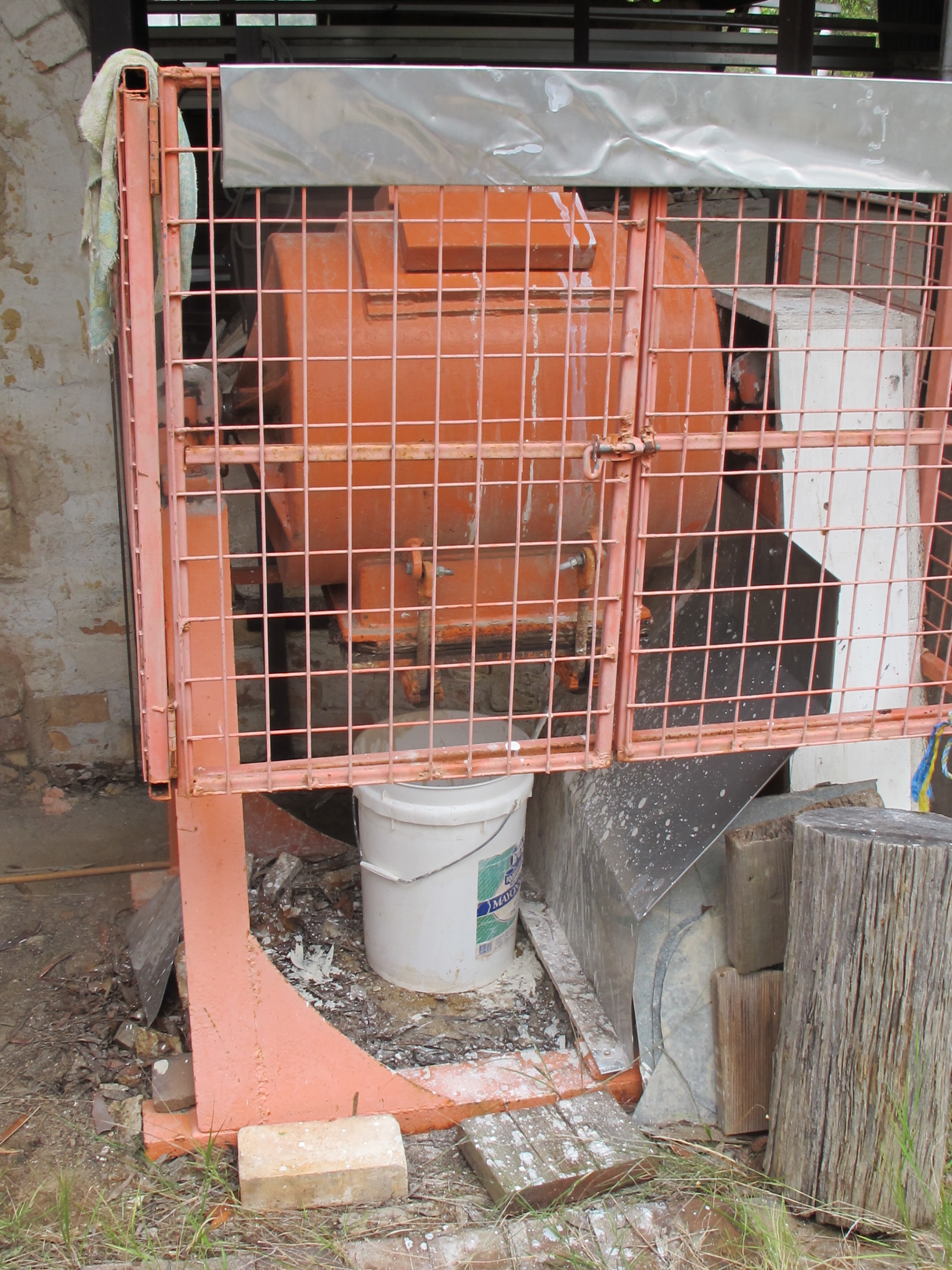 I have decided now to addapt this freer approach to my ceramic materials and my creative work. I have previously only used the rocks, shales and clays of my own local shire and I am still completely committed to this ‘local’ concept. I had found during this long extended period of research that although I tried very hard to locate everything that I needed to make my ceramics from only the materials that I discovered around me. I could not find any pale plastic throwable clay in a quantity that was useable. However, what I did find, was plenty of hard igneous rocks to make glazes and in the end I managed to make two really special, unique and very interesting stoneware clay bodies from self-processed, local rock dusts. To achieve this, I realised that I would need to add some bentonite (a very sticky clay) to bind and slightly plasticise these powdered rock bodies to make them useable. These rocks are so hard, that they need to be crushed first in a large jaw crusher, then a small laboratory jaw crusher and following that I put the grit through a disc mill and finally in the ball mill for 16 hours to get it really fine. Using this rather slow, convoluted and old-fashioned technology, that I obtained as industrial cast-off, from auctions and junk yards, I can process my finds from large rocks down to 200# powder in about 24 hours. It’s the drying out of the liquid clay slip from the ball mill that is taking the longest time and slowing the process down. Not helped by the continuing wet weather.