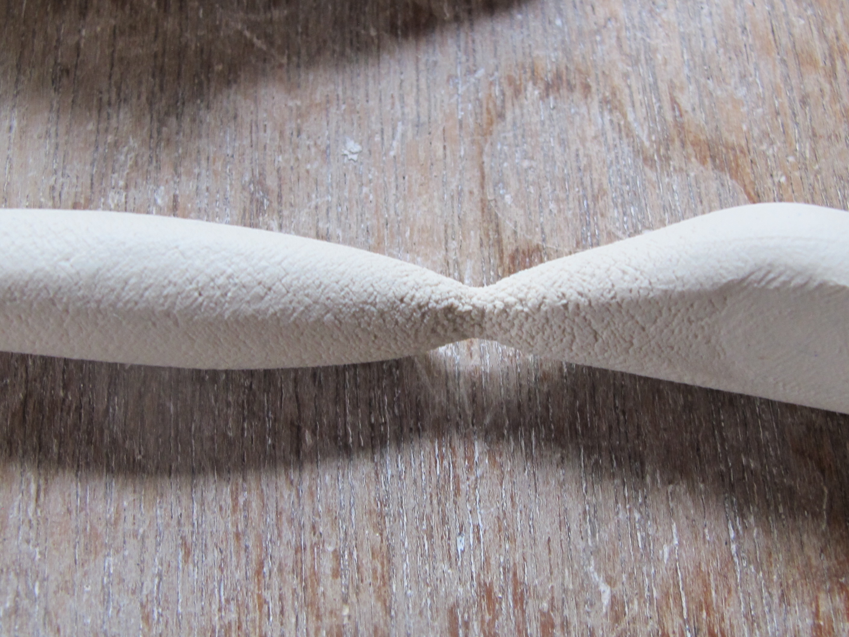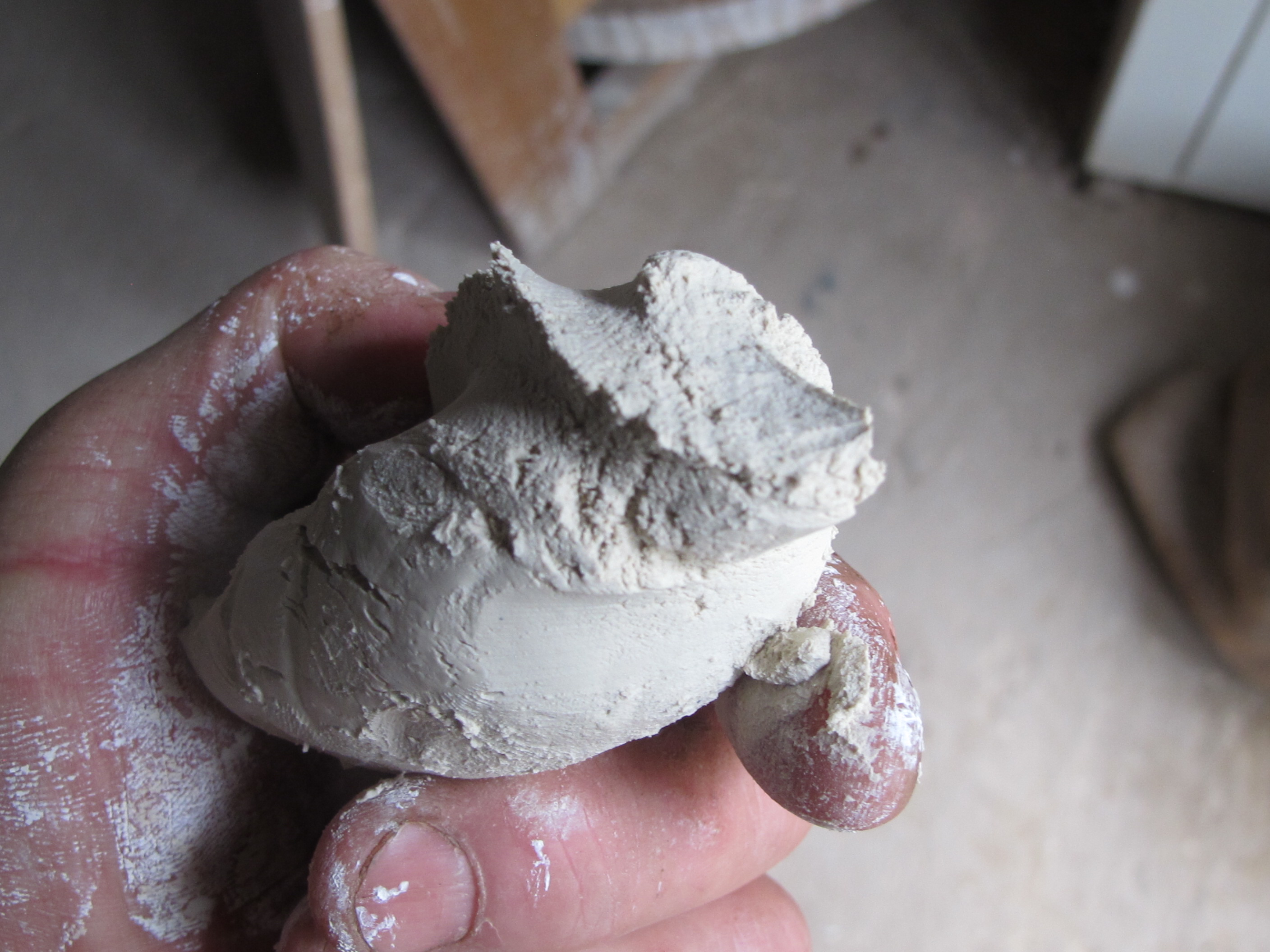 Conventional potters kneading doesn’t always give the desired result with this kind of paste. In fact, it doesn’t knead well at all. I learnt to wedge and knead clay in the traditional Japanese spiral fashion a long time ago when I did my apprenticeship with a Japanese potter. I became quite proficient at it. I had to. He was very demanding. As it’s turned out, this is one of the two things in life that I can do well, so I’m not embarrassed about my spiral kneading/wedging skills, in fact I considered myself competent.