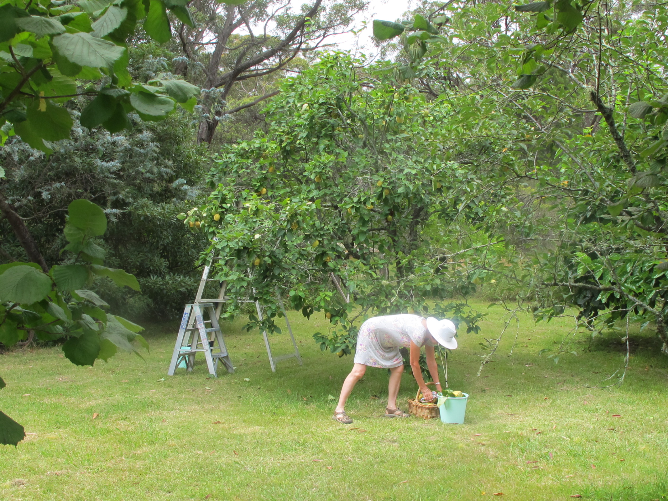 The Queen of Quince has started on the late summer preserving sessions. Potatoes, tomatoes, basil, beans, pears, apples, quince and red grapes are all coming on at the same time and have to be dealt with. I lend a hand where I can as an interesting relief from the kiln work. I usually try to keep January free of kiln orders, so that I can be 100% involved in the garden and kitchen at this busy, productive time of year. But this year, events transpired such that I have to work on a kiln to make a deadline that can’t be changed. Being adaptable and adjusting to change is a useful skill I’m told? Organic growing, nurturing, harvesting, preserving and cooking and eating our produce is the most rewarding thing that I can think of doing with my life. It is the reason that we have chosen to live out here in the bush with few services, but plenty of space, clean air and water to live out our self-reliant, creative, self-employed utopian dream. As it’s turned out, and much to my surprise, we have managed to ‘get away with it’.