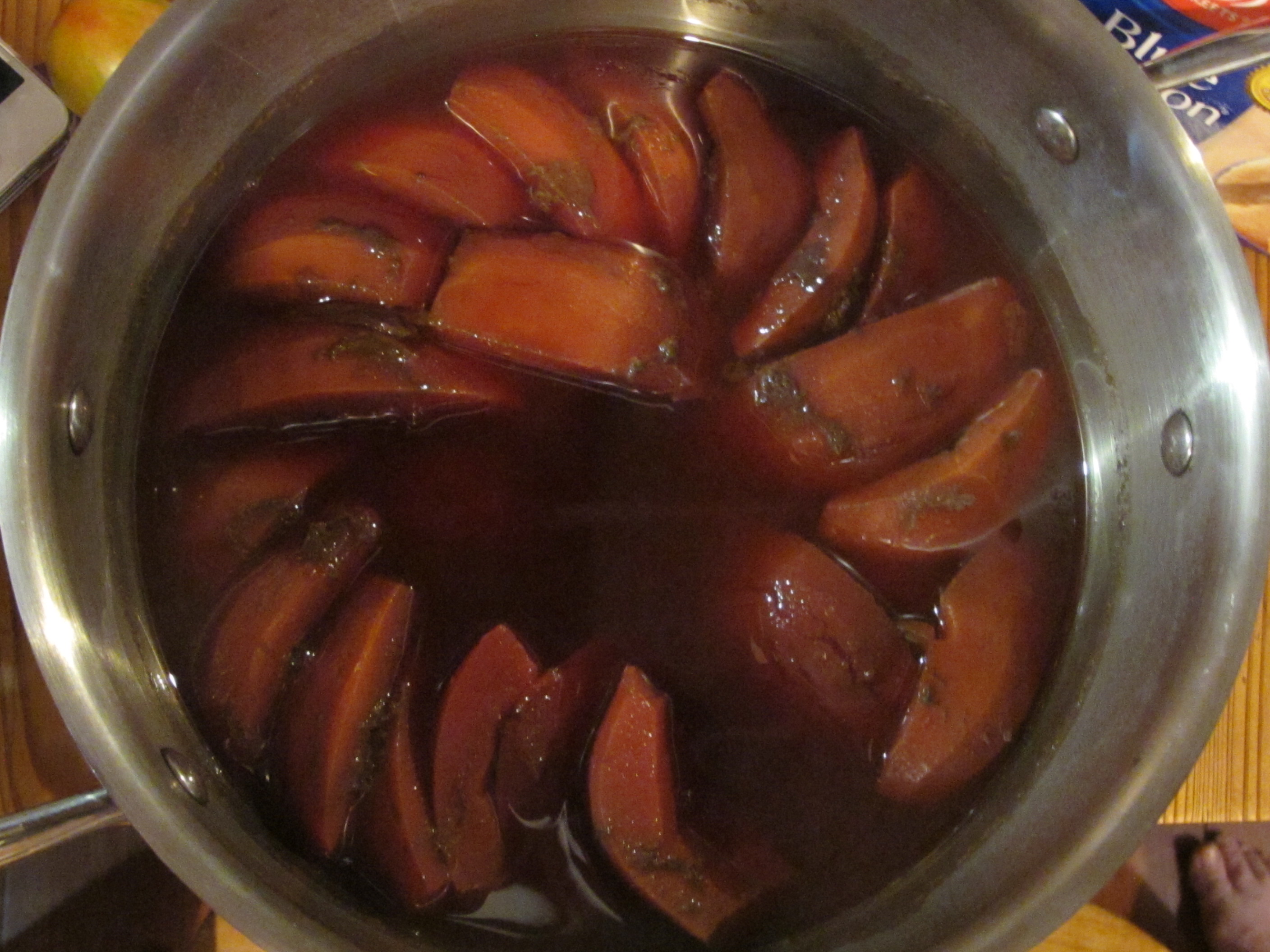 The apple juice from these apples are destined to be made into cider vinegar. Tomatoes are picked every few days and reduced to sauce and vacuum sealed in ‘pop’ top glass jars for use later. The basil has been converted into pesto. The first of the pears are stewed and in the fridge for breakfast and desert fruits. We have had the first picking of the 2015 vendage and some is stored as preserved red grape juice while some of it has been left to ferment with it’s own wild yeast to be drunk as Summer Wine. Slightly spritzig, sweet, weak red wine. It’s something that we came across on road-side stalls in Europe some years ago, when travelling around in their late summer/early autumn and it’s so fantastic and relatively quick and easy to make, compared to real wine. Very refreshing and satisfying on a hot summers day.