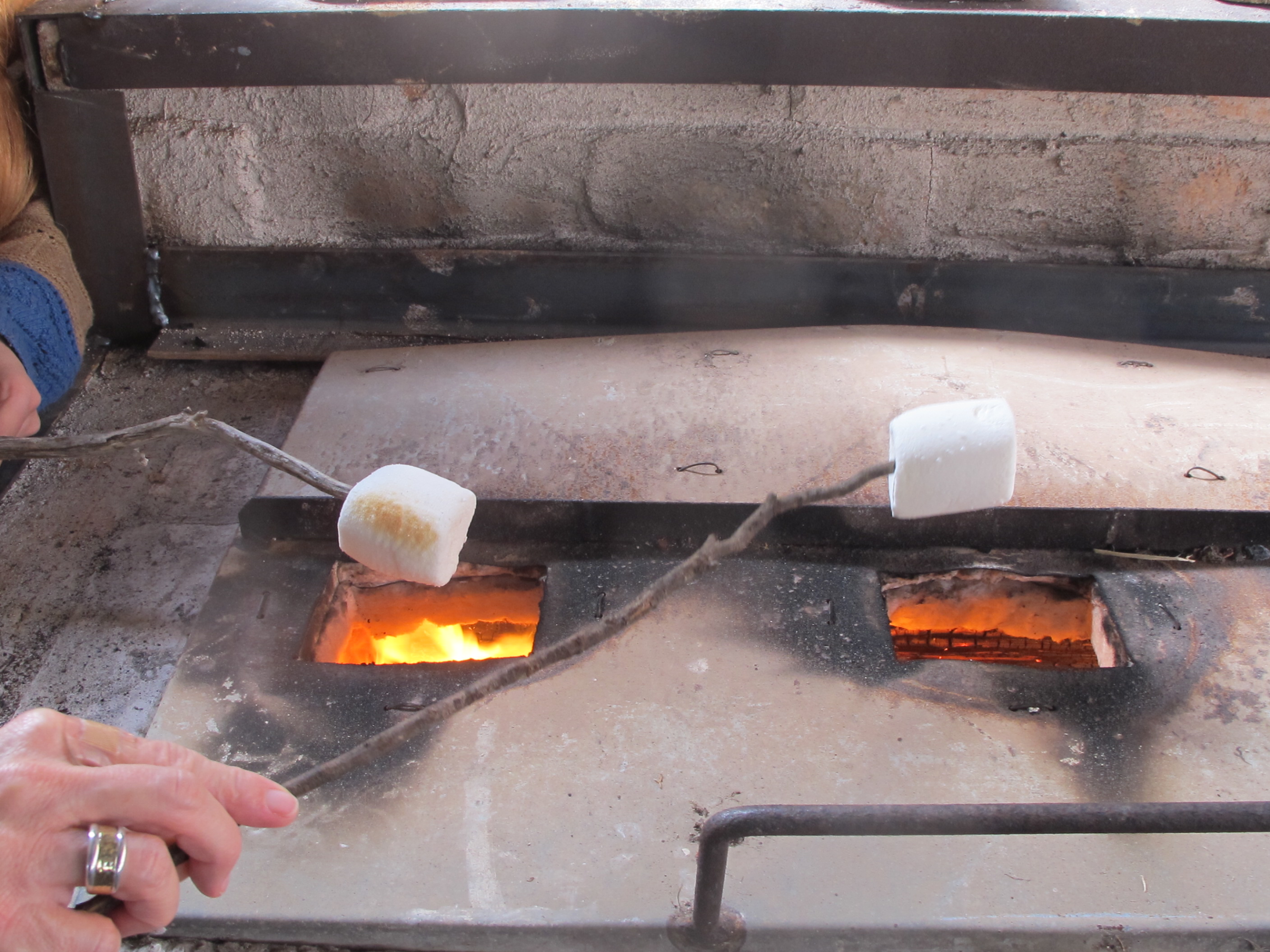 We light up and fire the kiln over-night and into Sunday. There seems to be a ritual developing of cooking marshmallows over the hot firebox on Sunday morning to cap off breakfast. I don’t know where it started, but it seems to be becoming a regular event.