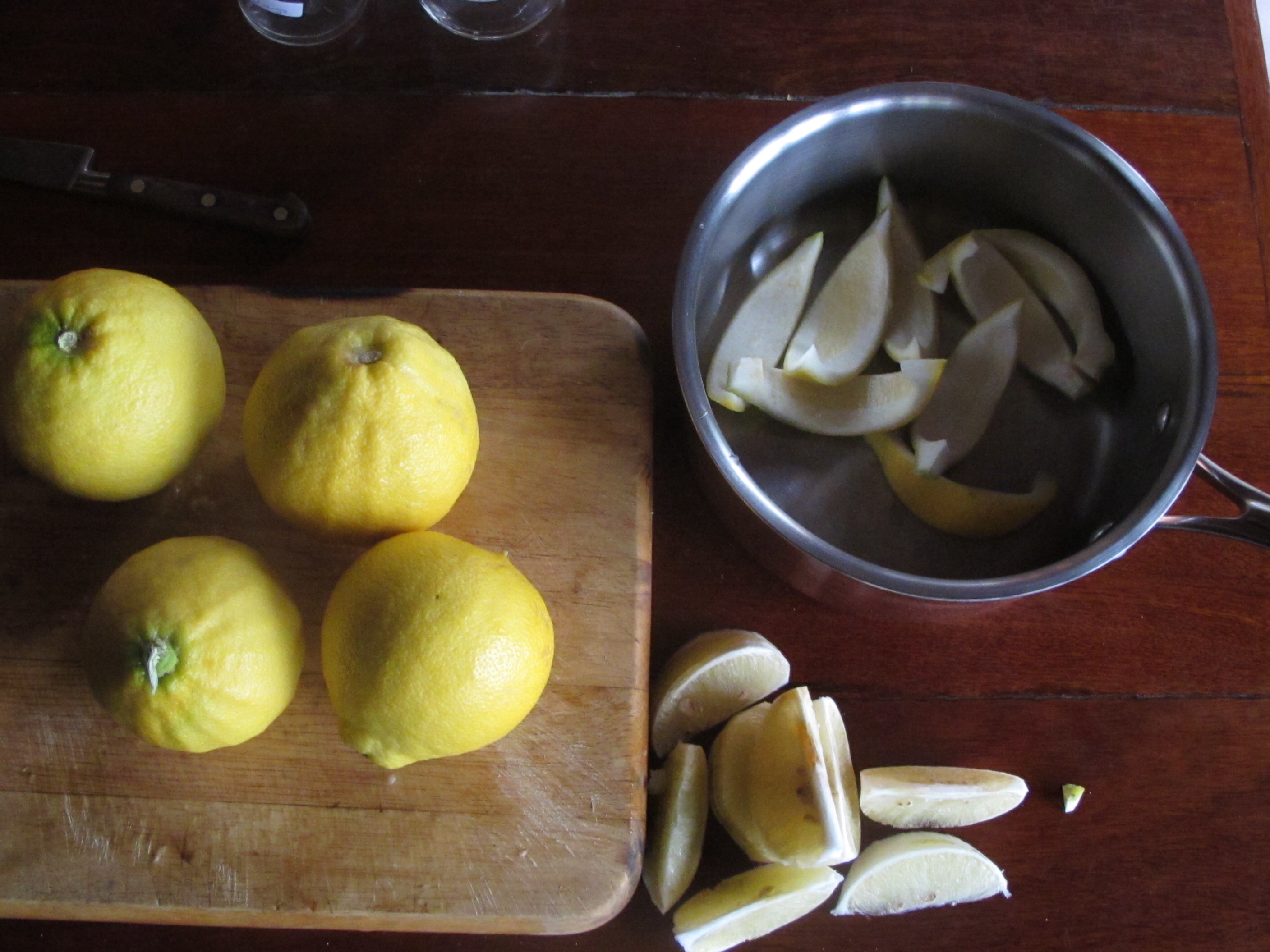 I was recently given a bag of old fashioned citrons by a lovely friend. She tells me that her husband makes marmalade from them. I try them for marmalade, but I think that the flavour is rather too strong. So I decided to try my hand at making candied, citron peel from them. I use candied peel for adding in with other dried fruits when baking some cakes. particularly for panforte or sometimes in muesli.