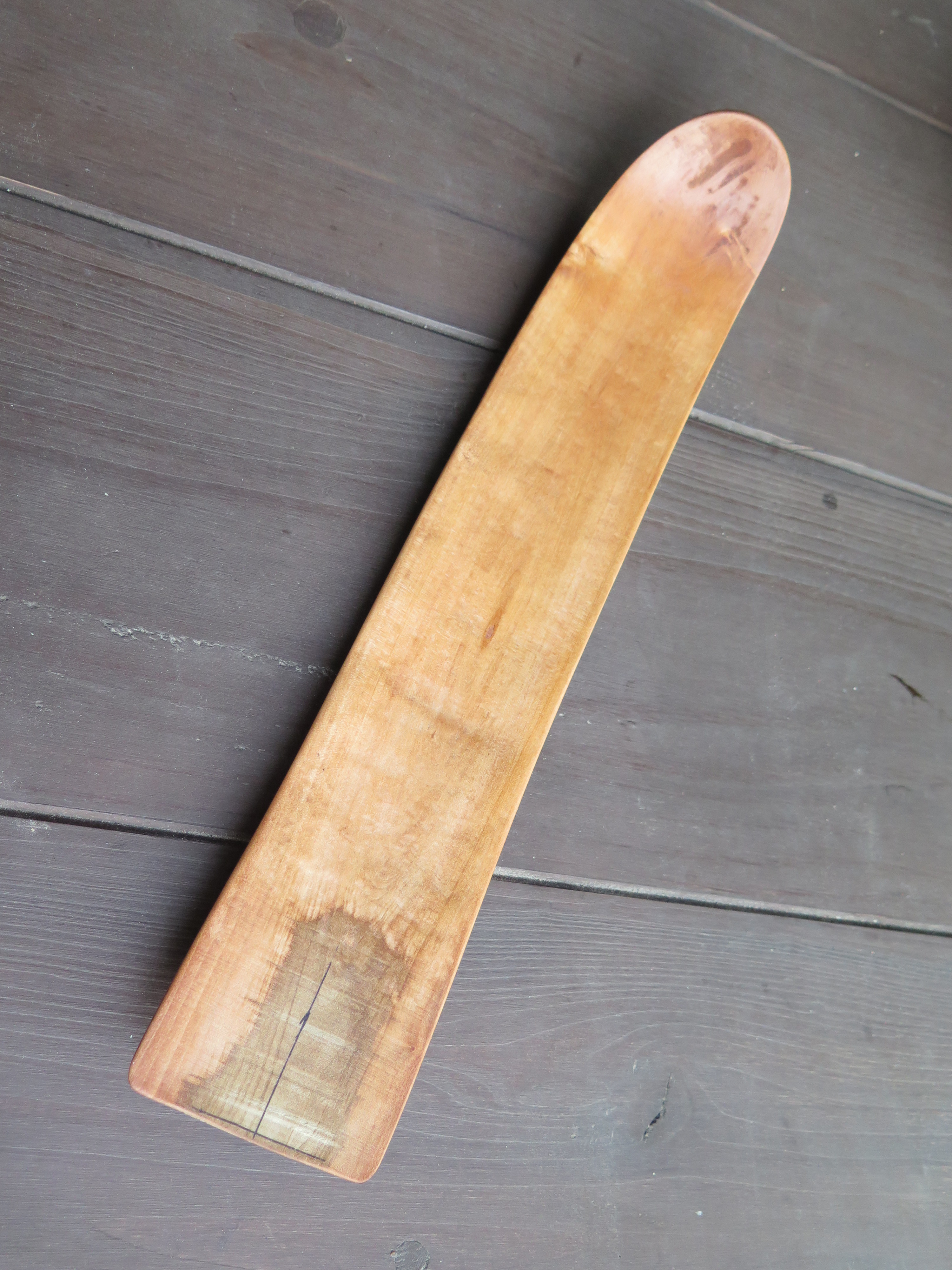 Tatsuya demonstrated using his when we were there at his place this time last year and he threw for us. He has had his for the 40 years that he has been a potter. His are nicely wabi,sabi now and well-worn in. The azalea wood is very hard to sand. I can tell that it will be a good, hard-working tool with a long life.