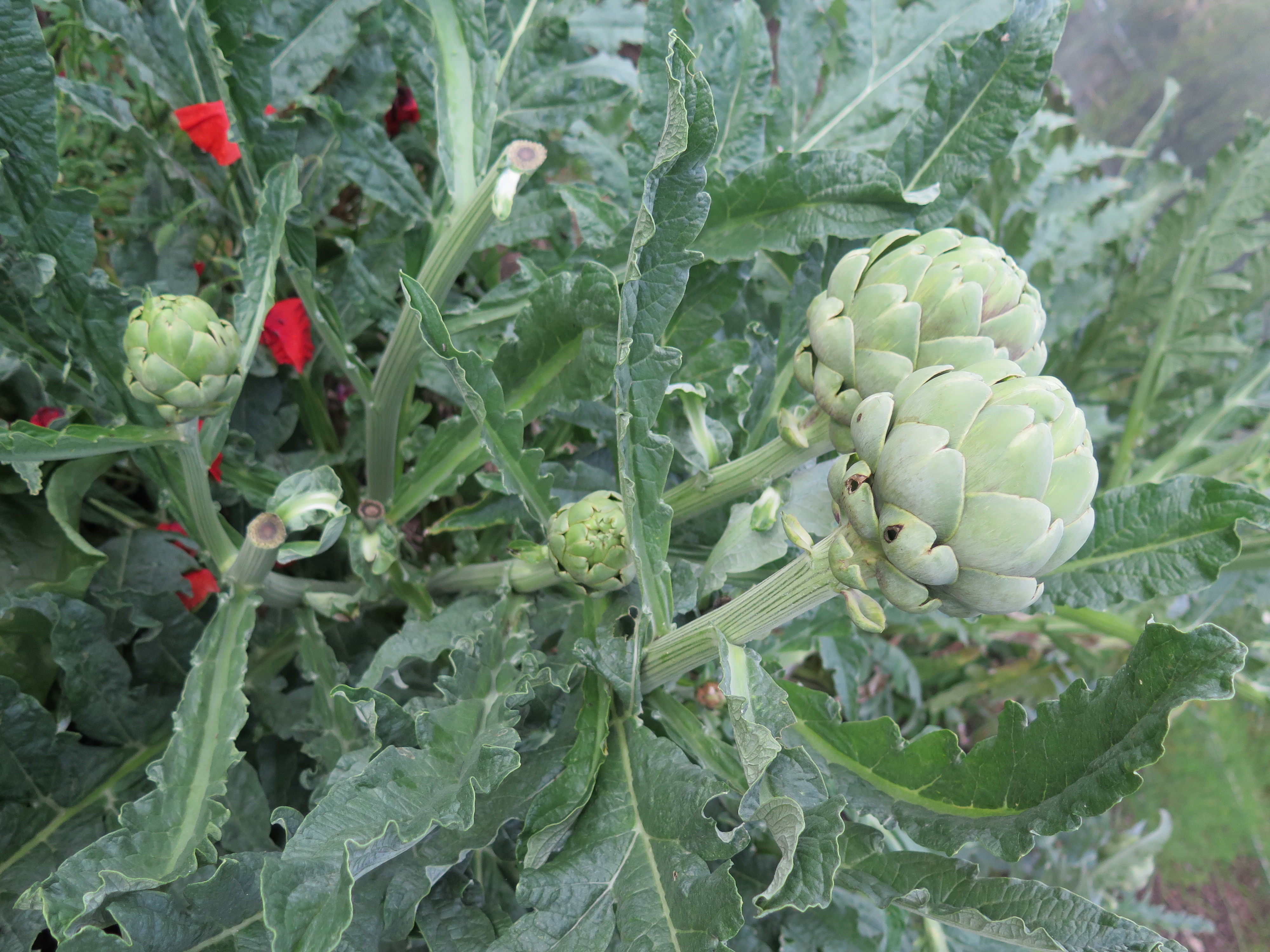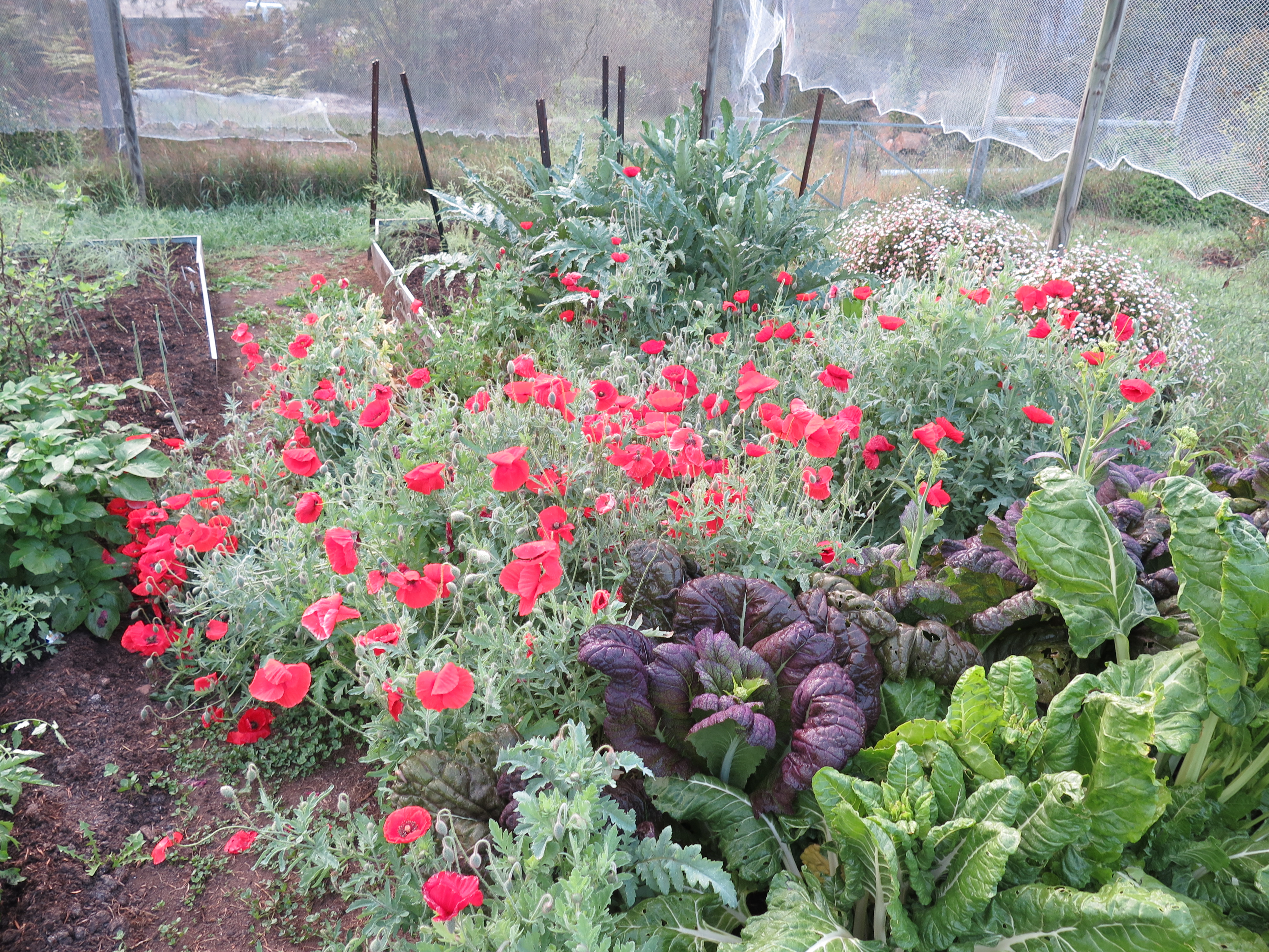 I have been back a while now and just about caught up. The garden is pretty much fully planted out with the summer vegetables and we have already picked our first cucumber, zucchinis, picked our first sprigs of basil and had a couple of meals of artichokes. Janine lifted some of the earliest garlic that had self-sown on the edge of the path, a few knobs that we missed last year, that had grown into splendid plants. They are all dried, plaited and hung up next to the stove in the kitchen. It’s so nice to have fresh garlic again. I forget just how juicy and oily it is when it is this fresh. This is the first year that we have had our own garlic last the full year. We had just 2 little dried out knobs left in the colander on the kitchen bench when Janine picked that first plant.