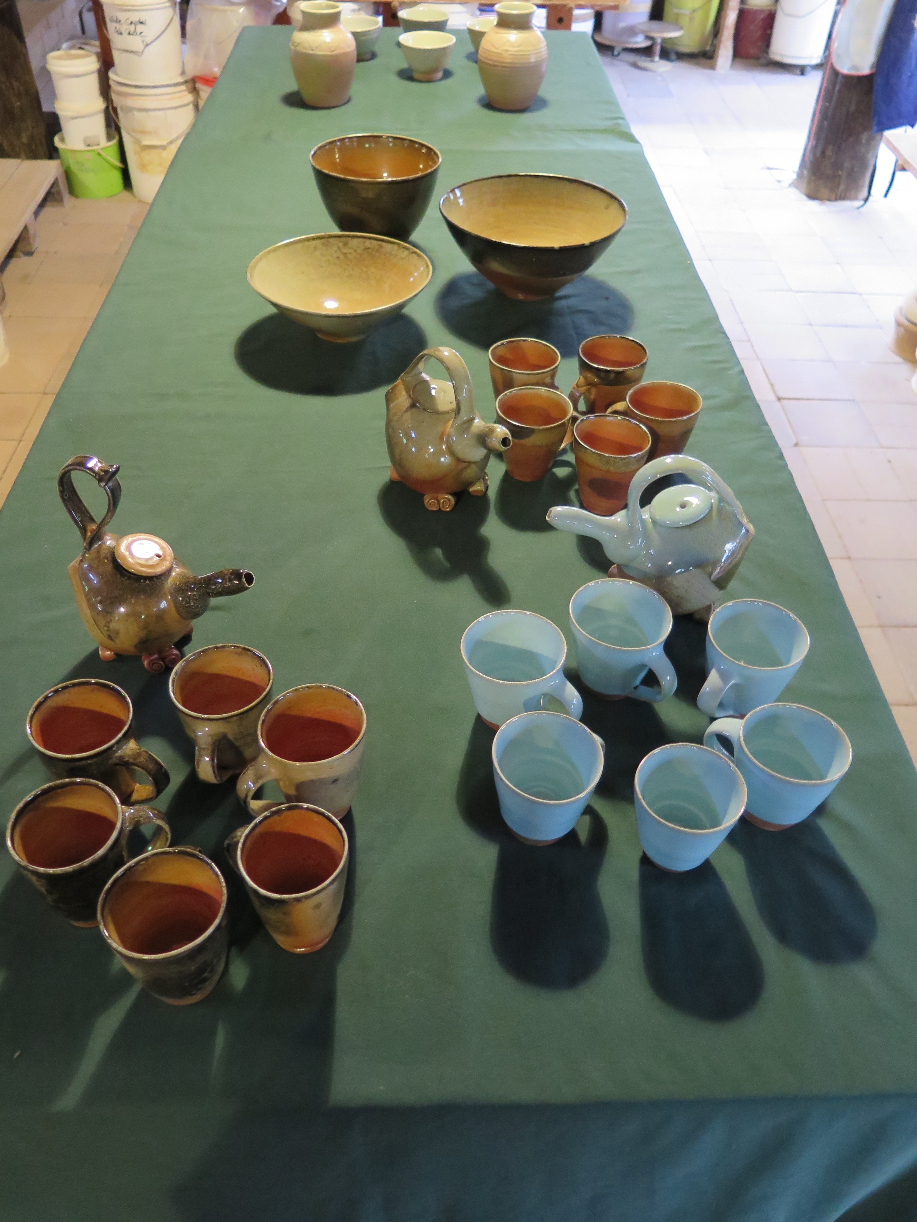 The garlic that I planted in March is wilting now and drying off, so it is time to harvest it and lay it out for drying. This will have to wait for next week, as we are flat-out busy cleaning up the pottery and setting out our pots for the Open Studio Weekends coming up. We are pretty much ready now with only minor adjustments left to do today. I did all the lighting and most of the pricing yesterday.