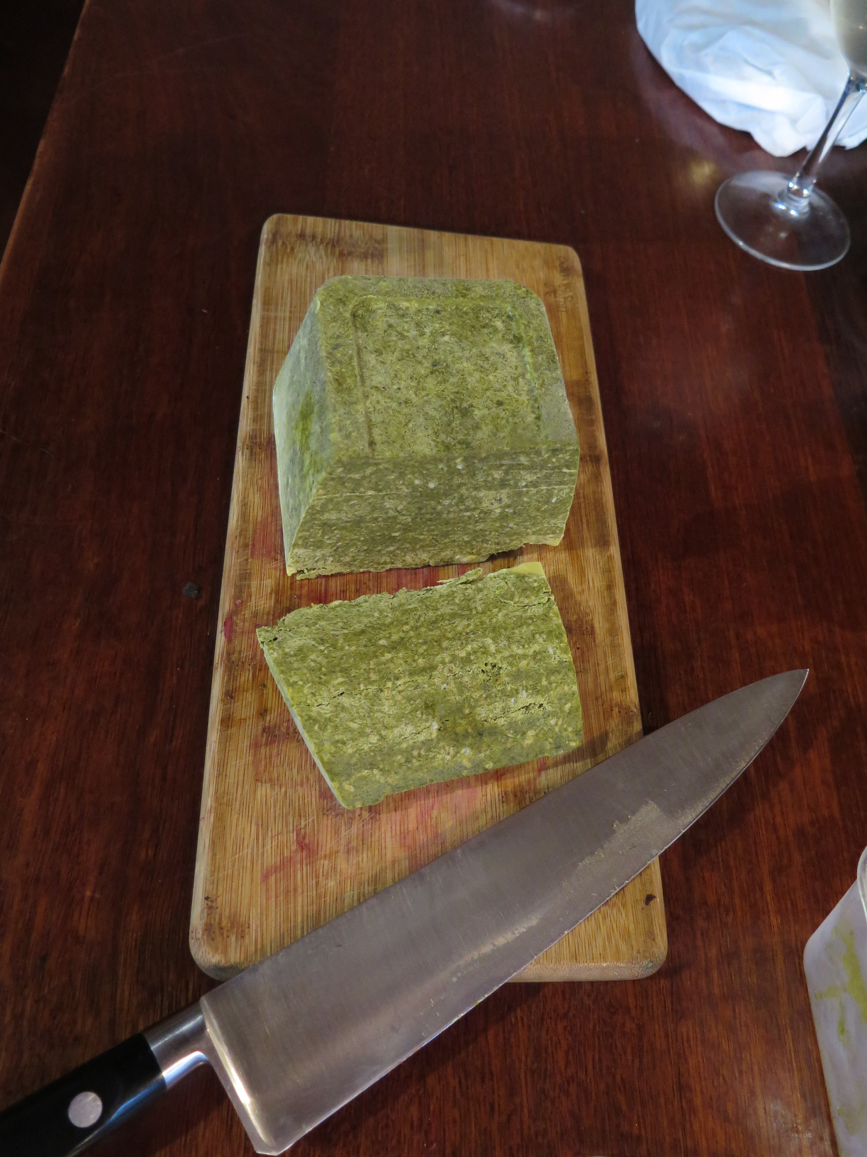We only have a very small freezer attached to the top of our small domestic fridge. We have chosen not to own a separate freezer to save using electrical power unnecessarily. When we preserve our summer excess from the garden we do it by cooking and vacuum sealing the produce in glass ‘Vacola” jars. Basil pesto of course, isn’t cooked, so it is one of the few things that go in the freezer. I made 7 tubs of the stuff last summer. It’s great to be able to go to the freezer and grab a chunk of distilled summer garden essence and add it to a meal so much later in the year.