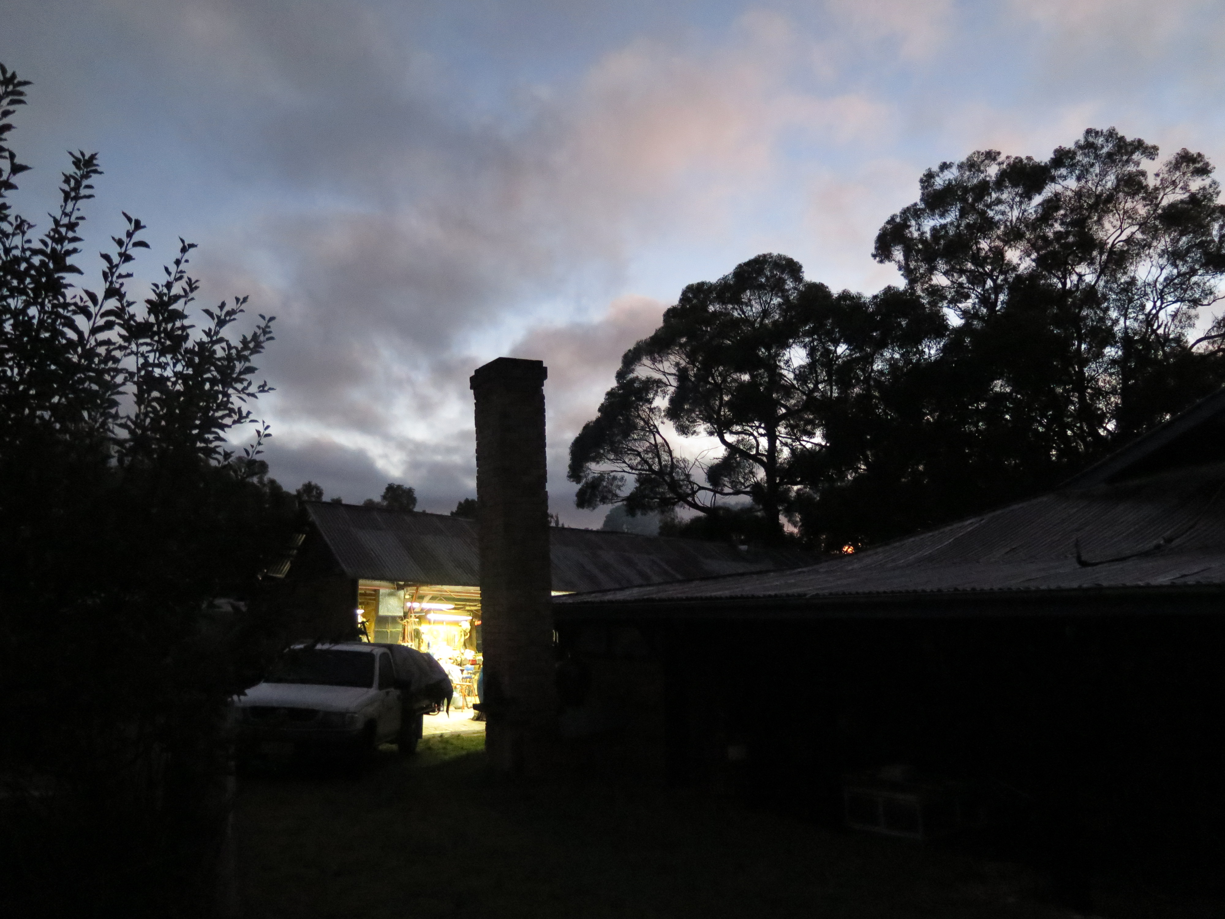 We are firing the mid-sized kiln of 1.25 cu. m. We don’t fire the big kiln anymore. At 4.6 cu. m. it is just too big for us now and the amount of pottery sales that we can make these days. We have found that it is better for us to fire the this kiln more often and get all our tests through in reasonable time so that I can continue my research into my local raw materials, especially the development of my single stone porcelain bodies and glazes. Now that we have a reliable small wood kiln that can fire our tests in at any time, it just takes 3 hours, this will make our testing and research regime a lot easier. As the night marches on relentlessly into the early dawn, the birds start carolling, mostly magpies by the sound of it. They just love the dawn and make a big fuss about it. Dawn seems to be some time after 5 am when it is still quite dark, and before 6 am, when I can switch off the light and make entries into the kiln log without needing the light on. The birds are carolling madly now as it gets lighter in the eastern sky. It’s a tremendously beautiful sound, so gentle and lulling. It’s like some pure form of happiness made audible. It’s infectious. I feel happy! Why are they so infectiously happy? Are they celebrating the fact that they are still alive and not eaten during the night by some predator?