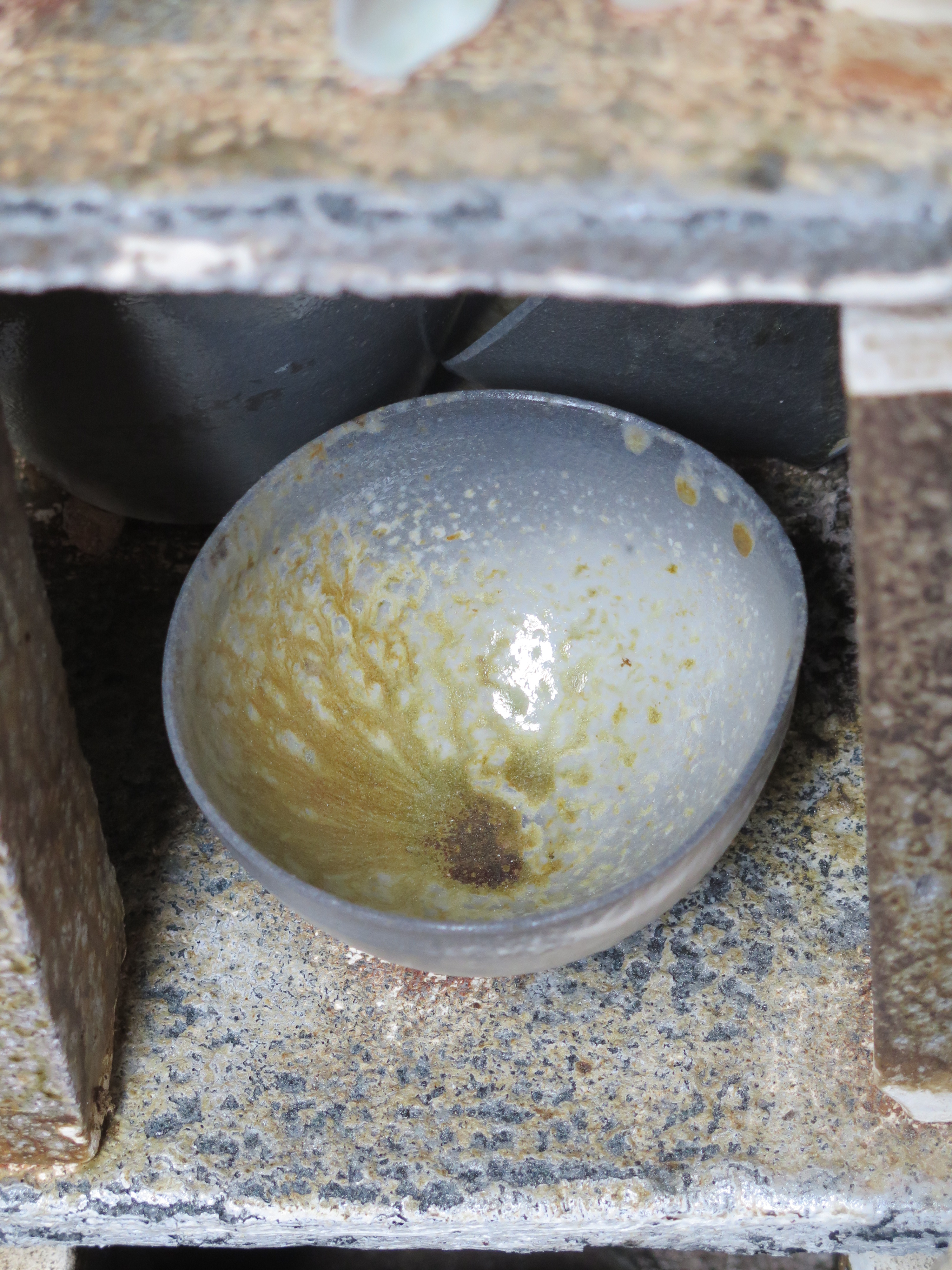 This firing has a lot of tests in it, as all my firings do. If I don’t have time to make some new tests and follow-up on new ideas. I feel like there is something wrong, something missing. After a lifetime of potting. It’s 48 years now since I got to throw my first pot on the potters wheel and was hooked. Any firing without tests in it is an empty firing. It’s the test pieces. The promise of something new revealed, that makes the unpacking extra special and not just plain mechanical work. It is the stimulus of expectation that makes the difference. I know that I should be aware of my all too human failing of expectation, just observe it and let it pass, but it just hangs around until I see those tests. As it often turns out, they are not very special, but every once in a while there is something interesting that makes it all so much more rewarding and worth while. It’s probably something like a kind of addiction. Hanging out for that next hit of pleasure, that next intellectual/aesthetic indulgence. It can just be a test ring or a shard. The object itself isn’t all that important, it’s the internal machinations and the thought processes that it provokes.