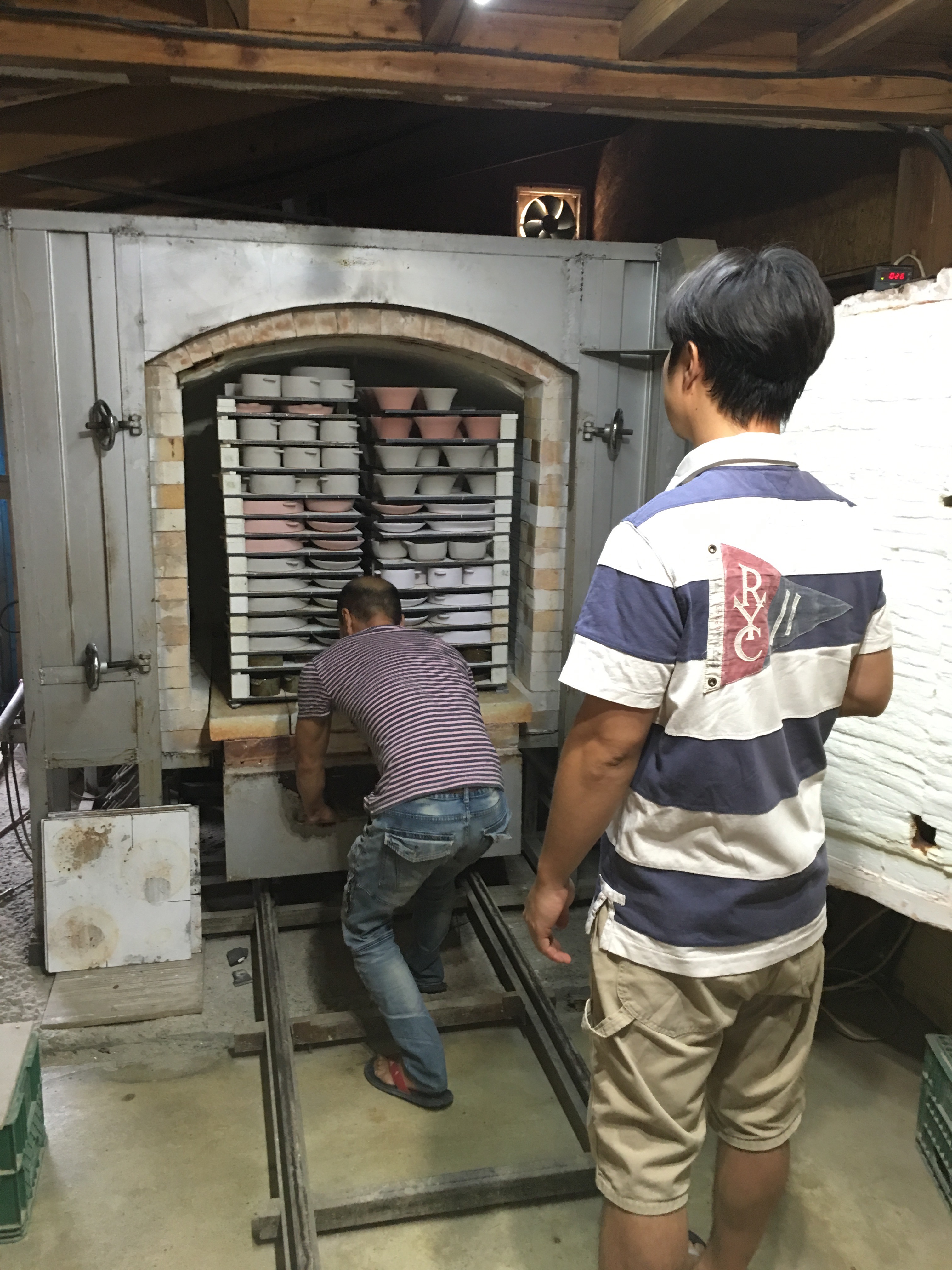 I get started on my work. They give me a metre of freshly pugged clay. I make 10 bowls of various sizes, while Miss Kang sits and waits. Most of the time, she is glued to her tiny screen. Occasionally, stopping to take a few pictures of me working. She is still working for me at all times it seems.