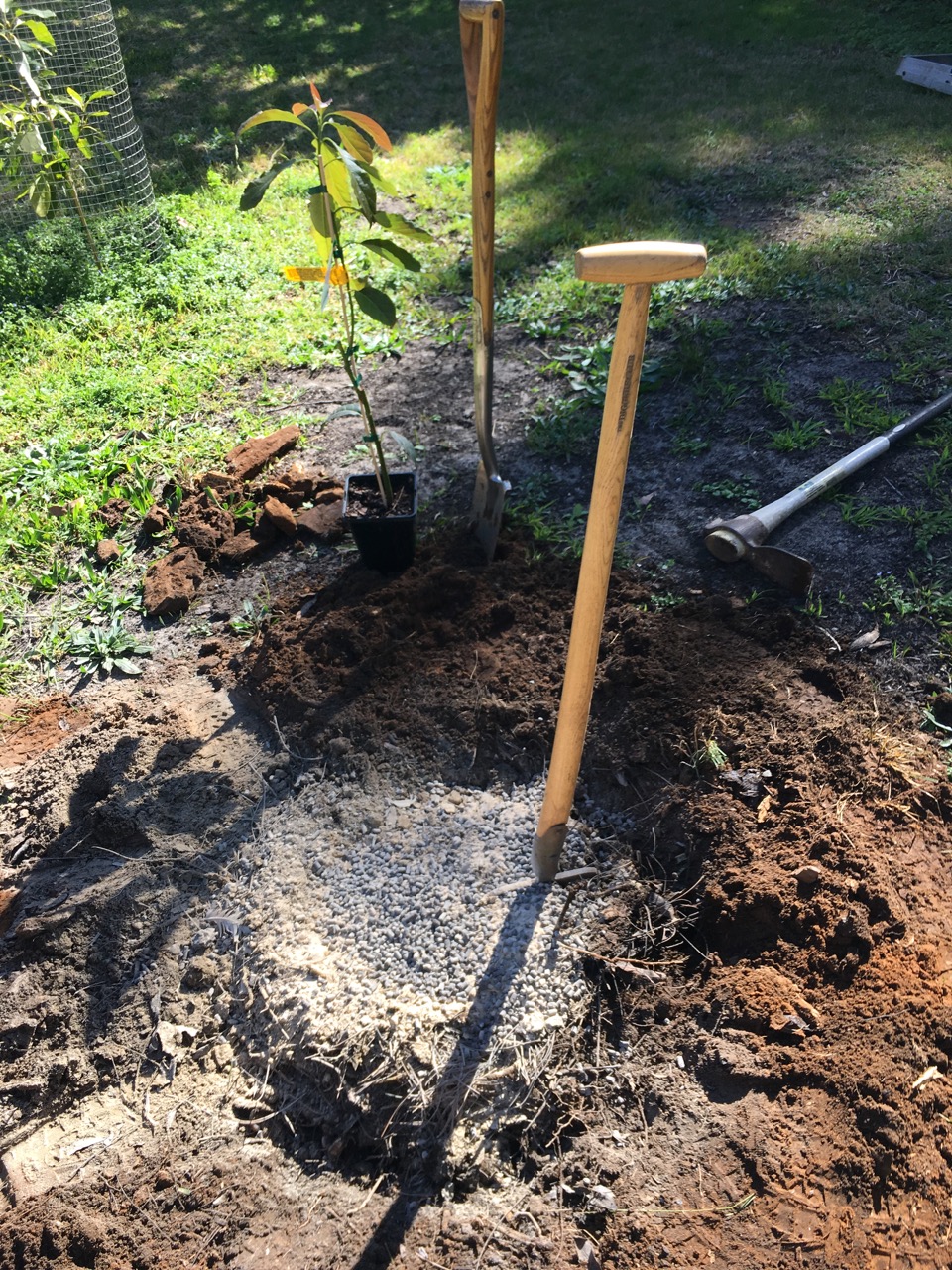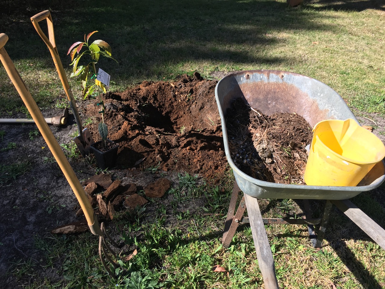 Now that the wheel barrow is back up and running again, and I have some time again. I get around to planting the new avocado tree.