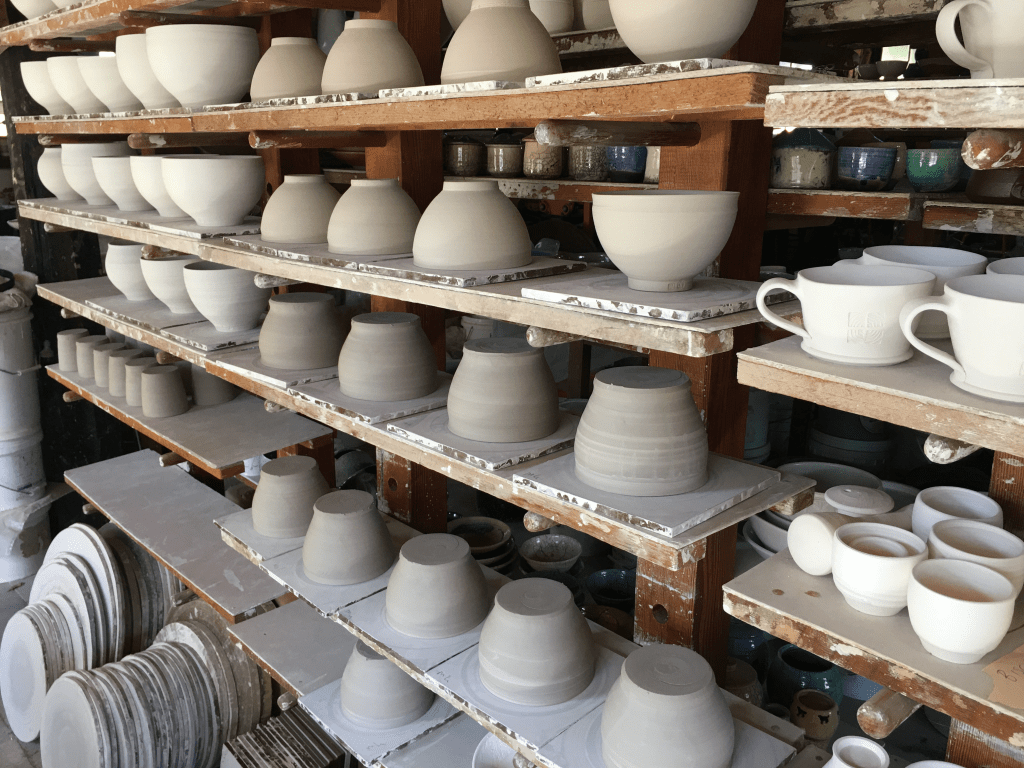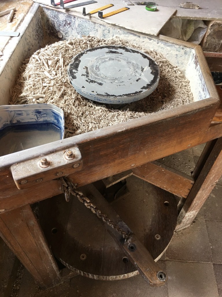 It would be better to leave the body to ‘age’ in a cool dark place for a month or two, but with so many variations of sericite porcelain bodies in constant testing and development. I’d loose track. As it is I really have to concentrate and keep very good records, marking every bag with a permanent marker, identifying every bucket of turnings in the same way and carrying this over to the slaked recycled material in the buckets and in the plaster tubs. It’s quite a paper trail of provenance, keeping track of it all. I also keep a daily diary in the workshop of what I’m throwing and what I’m throwing it out of. Every pot gets inscribed with the batch of body and later identified with oxide as to which glaze I used. I also keep log books for the glaze and the body ball mills, so that I know what I made, the date it was done, and what it was made from. I always seem to have a dozen different batches on the go at any one time and they all need their own bucket and bag storage space. It’s organised chaos.
