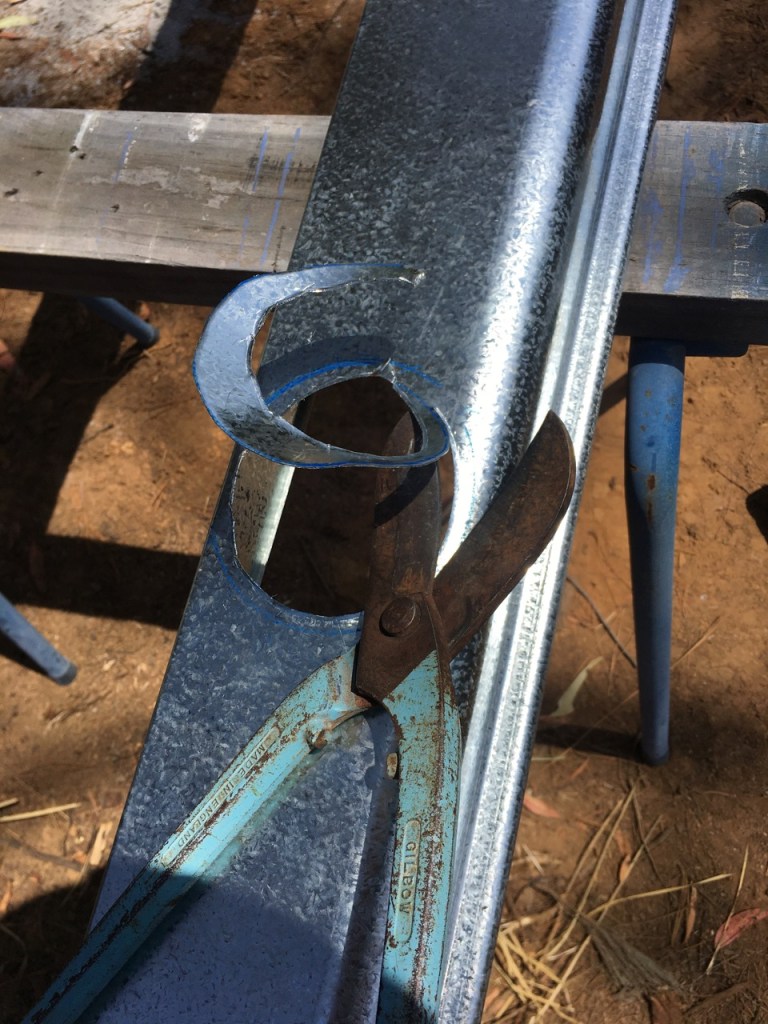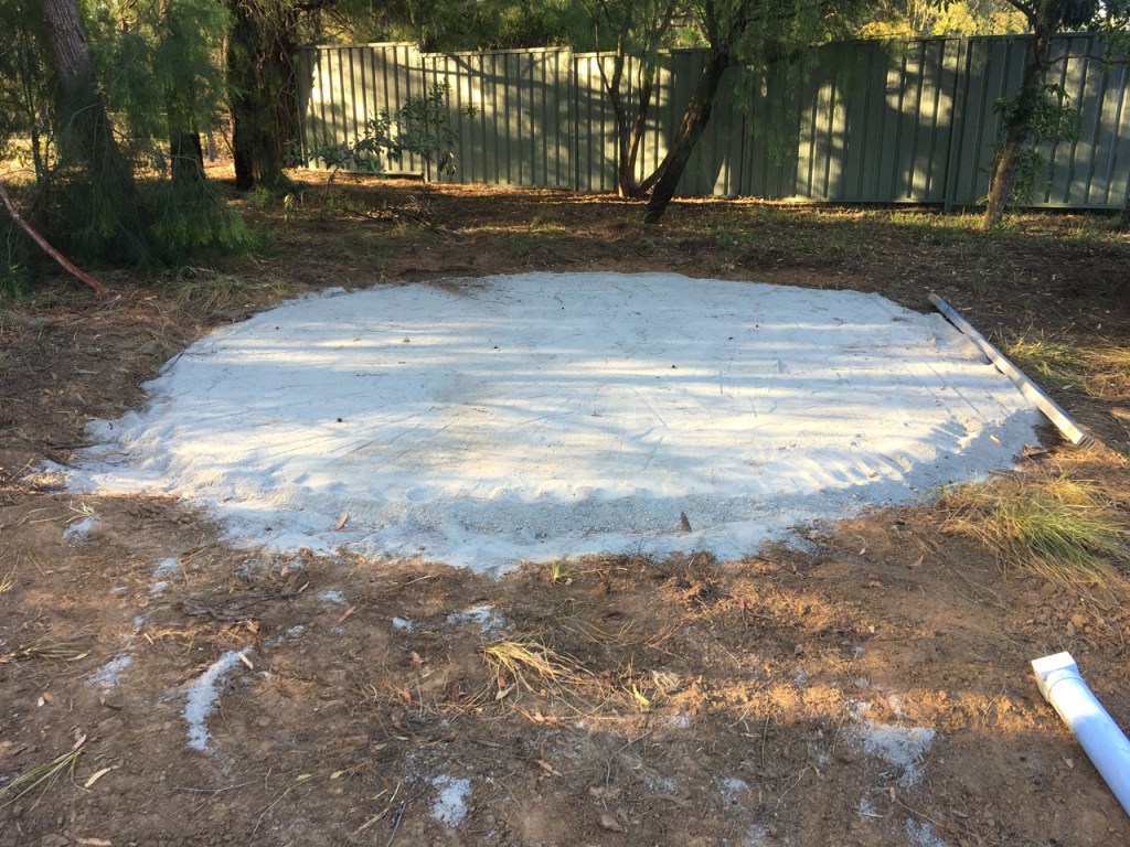 I realise that I can add a 7,500 gallon/35,000 litre water tank on the other side of the building. This is a significant exercise, cutting a 4.5 metre diameter level base through the top soil and placing 2 cubic metres of fine basalt dust, then spreading it and compacting it to make a solid base for the tank to sit on. I’ve been at this job since Friday last week. The base is done now, so I have turned my attention to the roof plumbing. I need to put in a syphon gutter system to take the water to the other side of the shed.