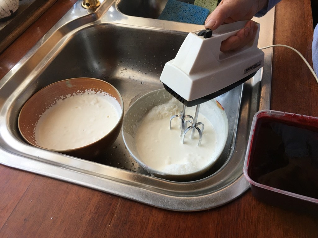 Janine whips berry puree into our local, pure, Picton dairy cream to make ice-cream. Nothing could be more natural and flavoursome. This has to be the most delicious way to get plaque build up in your arteries. At least there are no colours, preservatives, chemicals or artificial substances in there. Not too much sugar either.