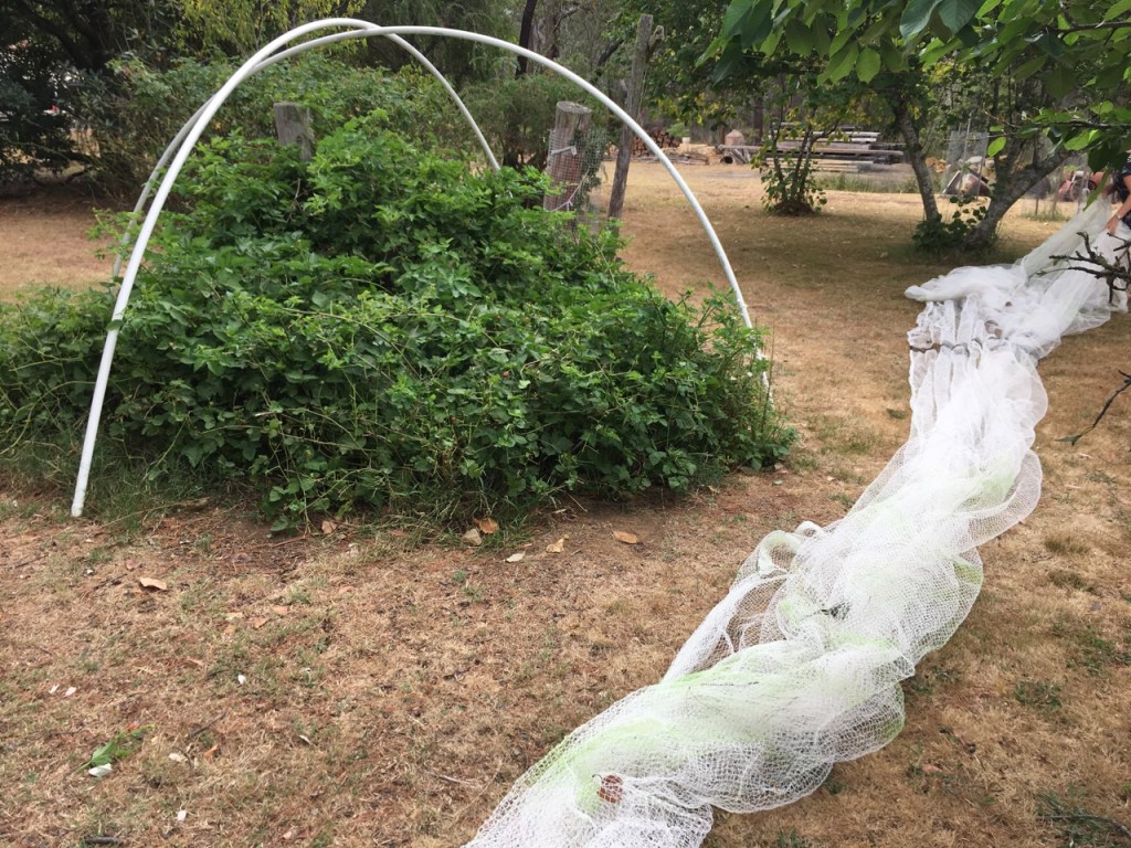 Todays job was to pick the berries. Both Young and blue. This will be the last pick of young berries, the canes started producing on the 24th of November. A whole month earlier than when they were first planted in 1977. We remove the netting and let the chooks in to clean up. The birds will get all the other higher odds and ends. We roll up the net and dismantle the hoop frames. Stored away till this time next year.