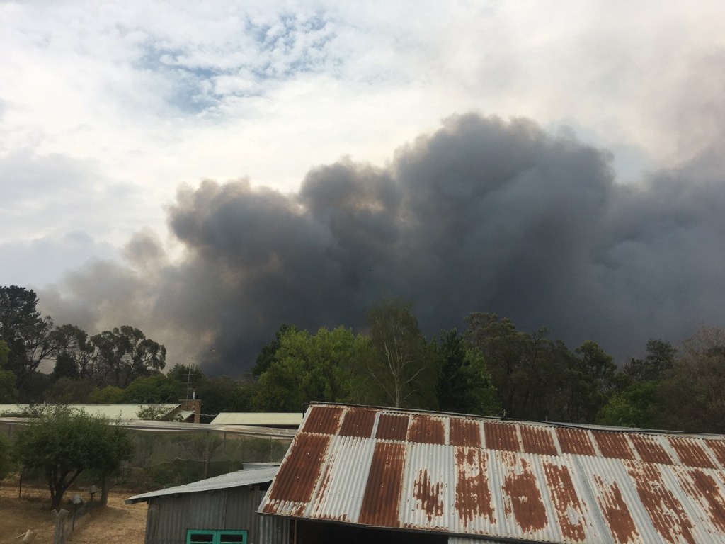 The fire really blew up into a massive plume just after that. It was a bit scary I must admit. but I have 4 different fighting high pressure pumps set up with sprinklers on all the roofs and northern walls on all the sheds and the house. I gave them a run to test them out again, but turned them off to save water, as there was no ember attack, because the wind was blowing it all past us and away.