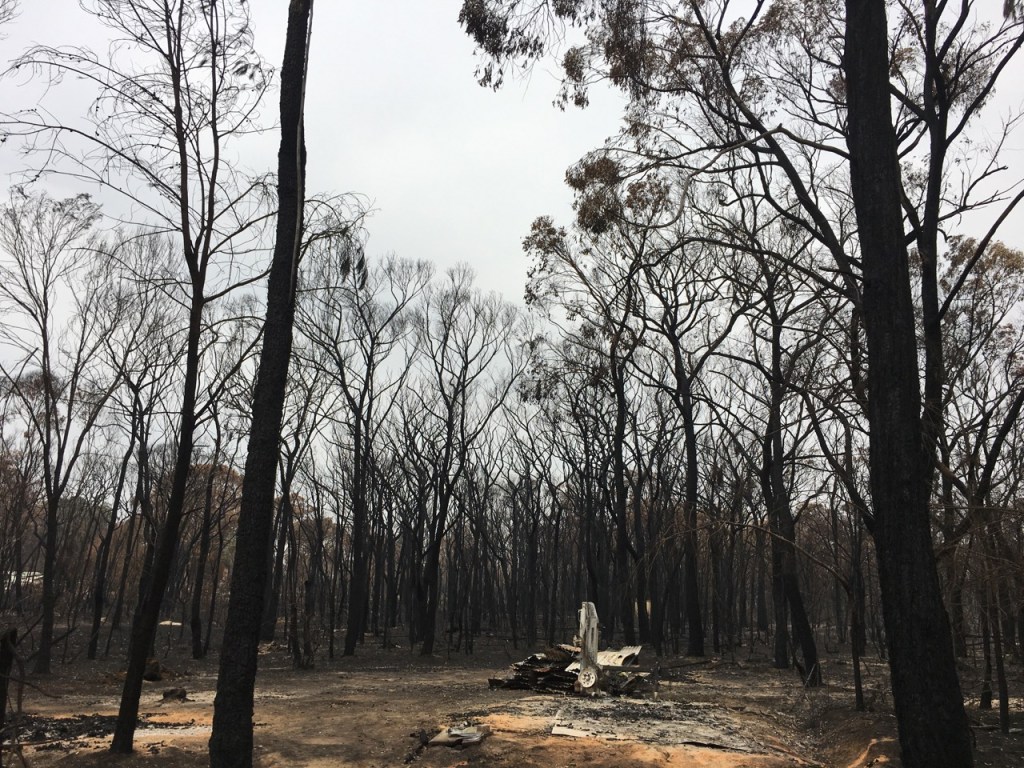 We have almost finished clearing away all the burnt trees and shrubs around the house. We won’t re-plant them. With an eye to the future, and the likely-hood of another fire like this returning in the next 6 to 10 years being very high to almost certain. We have decided to keep the front of our land facing West almost completely clear and being just mown grass. With the global heating crisis continuing unabated and both government and the opposition totally in the grip of big carbon business interests, they are all still completely in denial. Even if there was some small degree of change right now, the amount of carbon already in the atmosphere will take all of my life time to filter it’s way through the system. My current circumstances are the living collateral damage of this dinosaur-like attitude of denial.