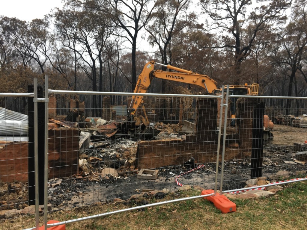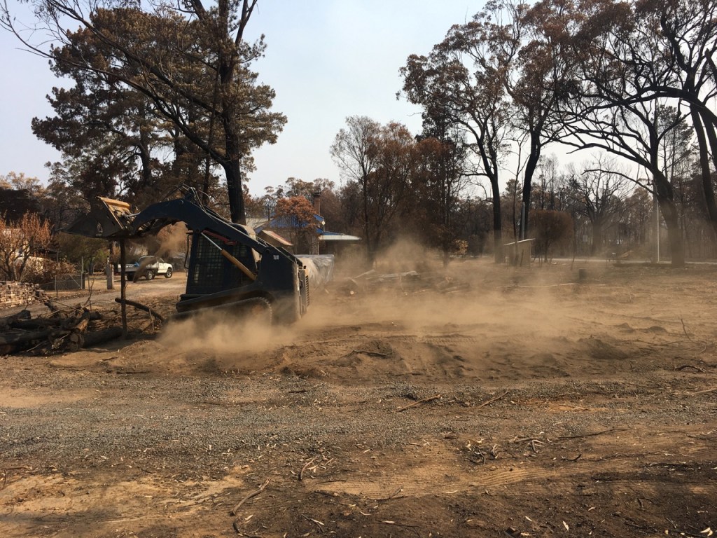 We started the epic journey of the clean-up. Janine and I had begun raking and scraping up bits of the massive load of charcoal, rubble, ash and dead, burnt shrubs and small trees. We worked and worked, with little impact. However, after a couple of days, my friend Ross, who works in earth moving and has an excavator and tip truck, turned up one evening. He told me that he would be working with the excavator for the next week, so he had brought his ‘bobcat’ skid steer loader for me to borrow until he needed it.