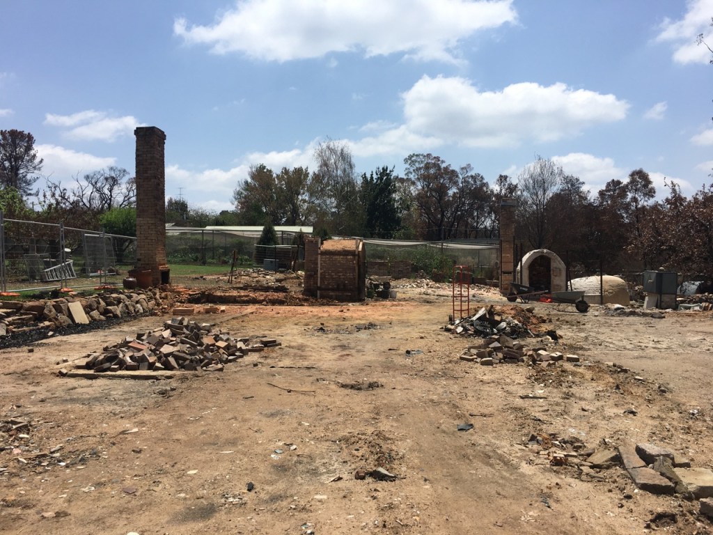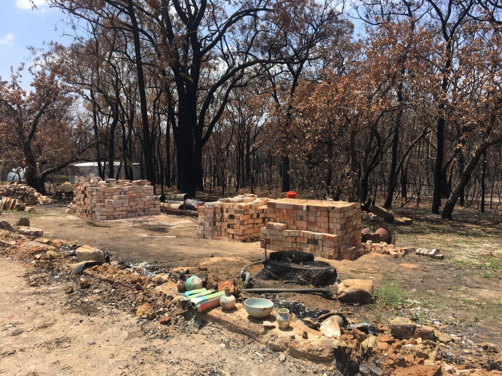We are so lucky to have such an amazing group of friends, who have gathered around and pitched in to help us with the clean-up. One month in and I have repaired or replaced the water reticulation system. This was all made of cheap plastic ‘poly-pipe’ and was badly effected by the fire. It was almost totally buried underground, however it wasn’t buried deep enough. I dug all the trenches by hand over a long period of time in the 70’s using a spade and a mattock. Six metres per day in the early morning before work. There was around 1000 metres of piping burried in this way over the years. I realise now that I should have put more effort in, but one man can only do so much.