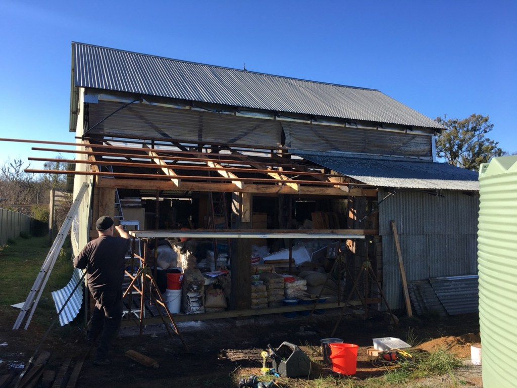 Since lining the carport I have been working with my friend Colin the environmental builder. We have dismantled the burnt-out north western corner of the barn and rebuilt it with my new square peg post and another recycled one that Col had in his yard.