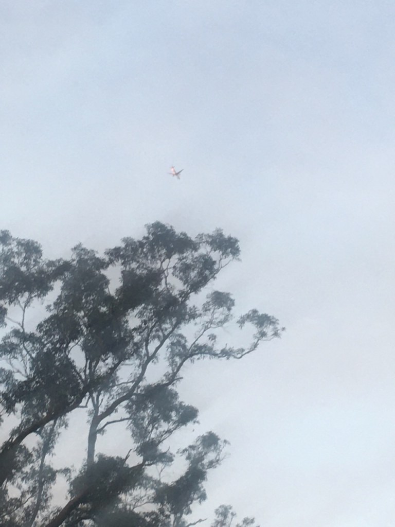 6 months ago we had them thundering slowly overhead at low altitude, flaps down and roaring, just above a stall speed to deliver their pink fire retardant all around us. But that was then and this is now, so this solitary plane was a notable surprise.