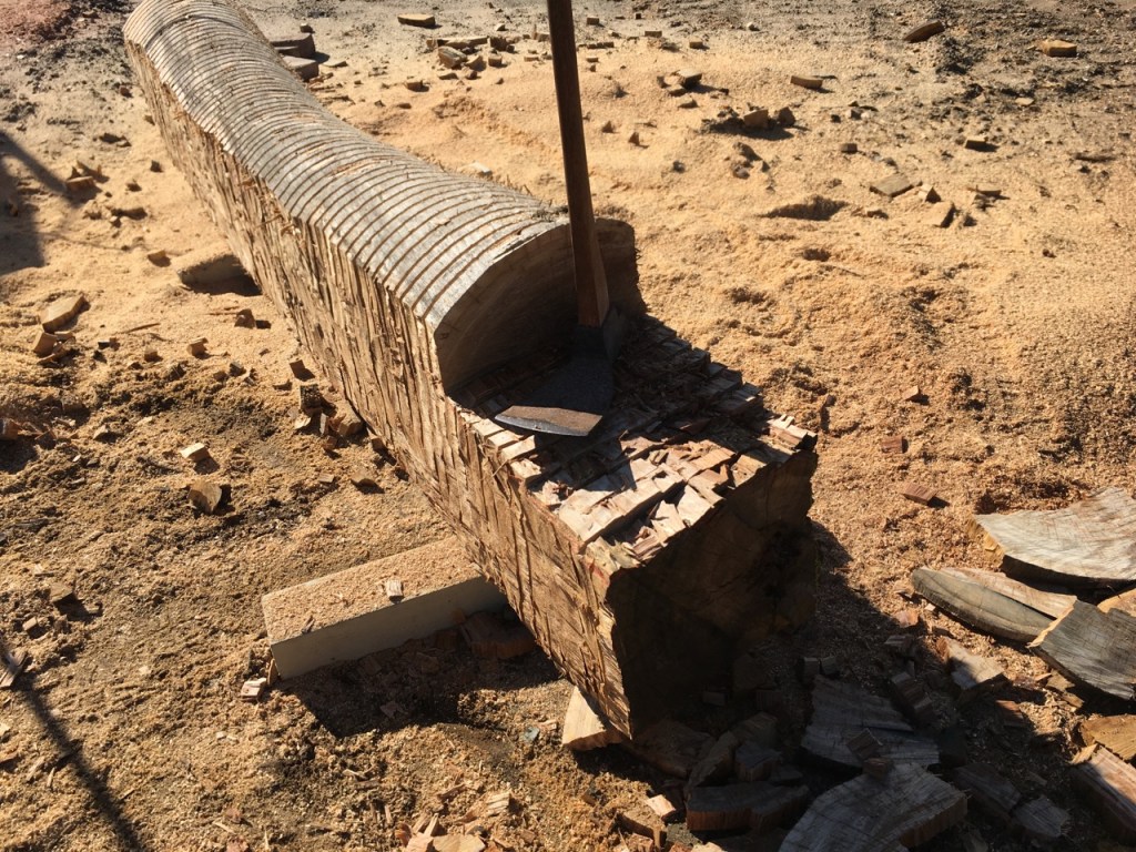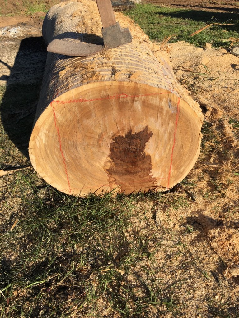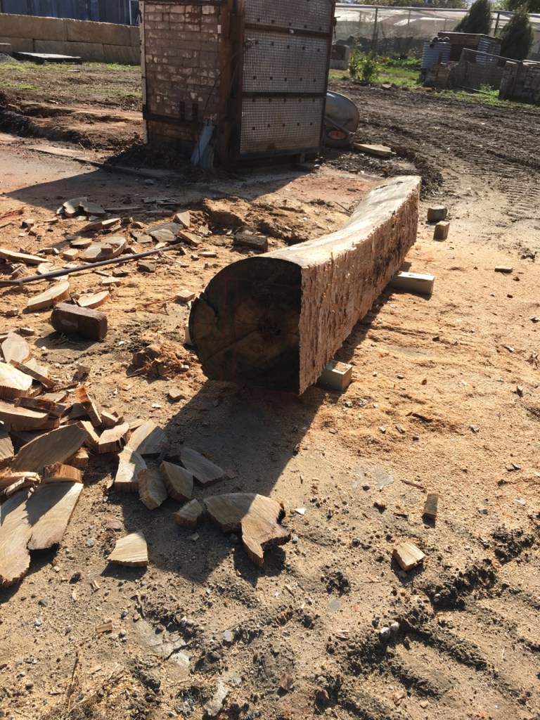 I’m mostly well again now and this week I have come back to the job of squaring off the massive hardwood post. Extracting the square post from the curved, round log. I can only manage just one face each day, as It’s hard on my ageing back and shoulders.