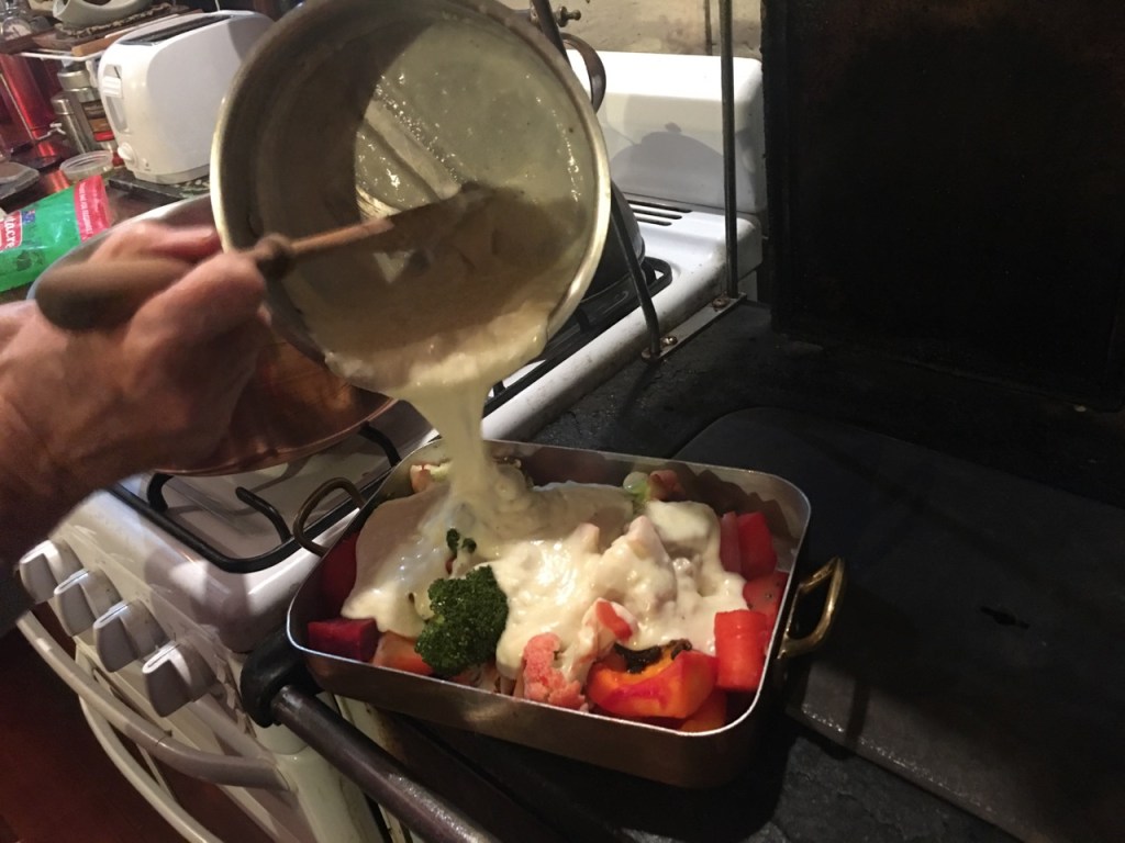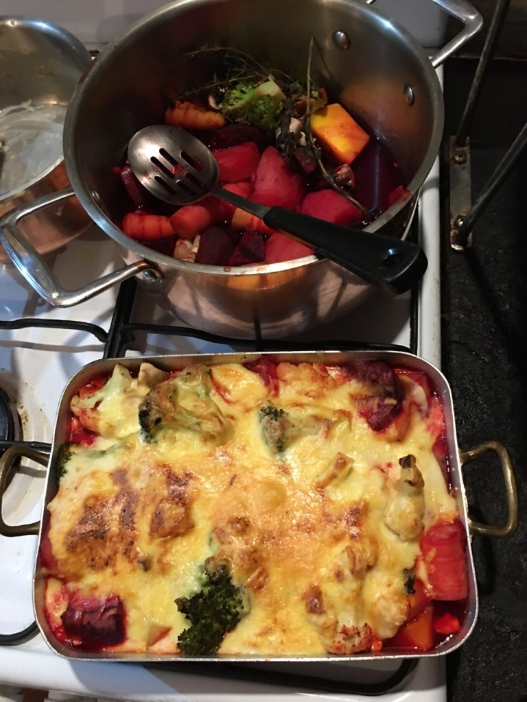 There aren’t that many traditional recipes that call for this unseasonal combination. Cauliflower au gratin is a seasonal favourite, as is baked vegetables in a béchamel sauce.