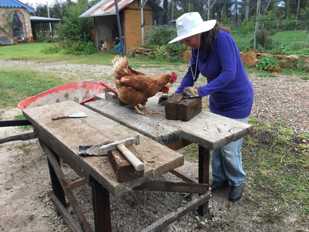 Janine and I have been getting up early and going out to the brick cleaning bench each day now at around 6-ish. We chip, scrape and clean until we have have 100 done, that takes us about 2 hours. The first day it took us 2 1/2 hours, but we are getting better at it now, so we have knocked half an hour off. We don’t try and do more in the extra time, we just knock off once our quota is filled and then rest our arms and wrists.