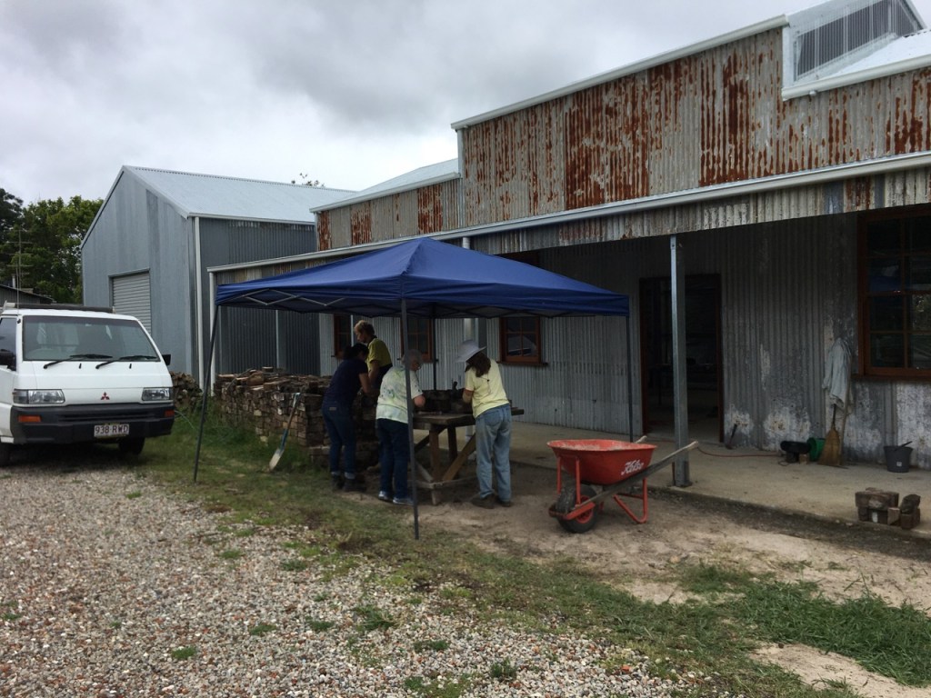 Yesterday we had our friends Ami and Kate here for the day to give us inspiration and encouragement. We managed to work most of the day, out under the portable gazebo shade cover, and got 200 bricks cleaned. A good effort for a hot day. We worked slowly and steadily with watering breaks, lunch and finally a treat of ‘Splice’ style ice creams at the end of the day around 4.00.