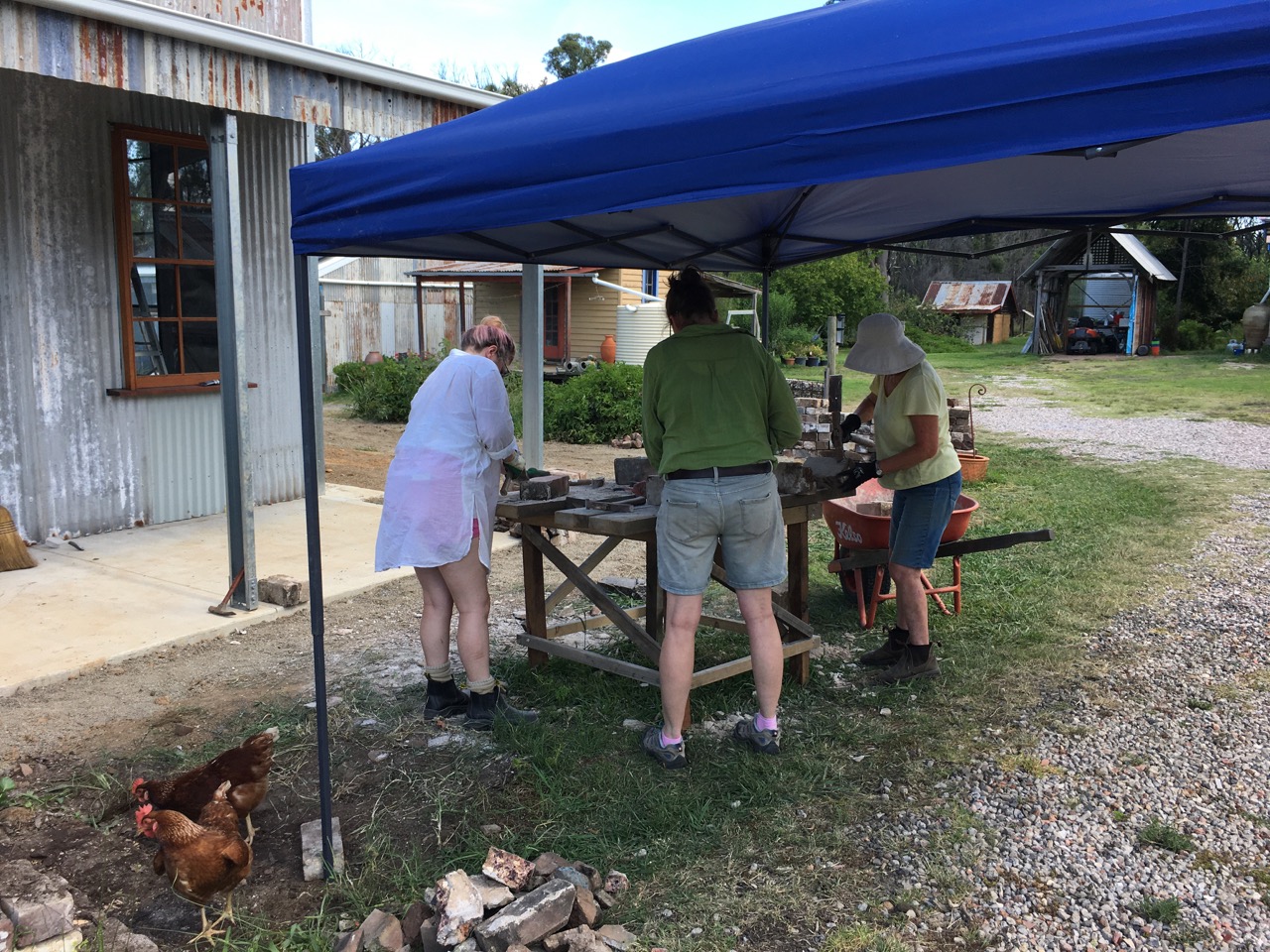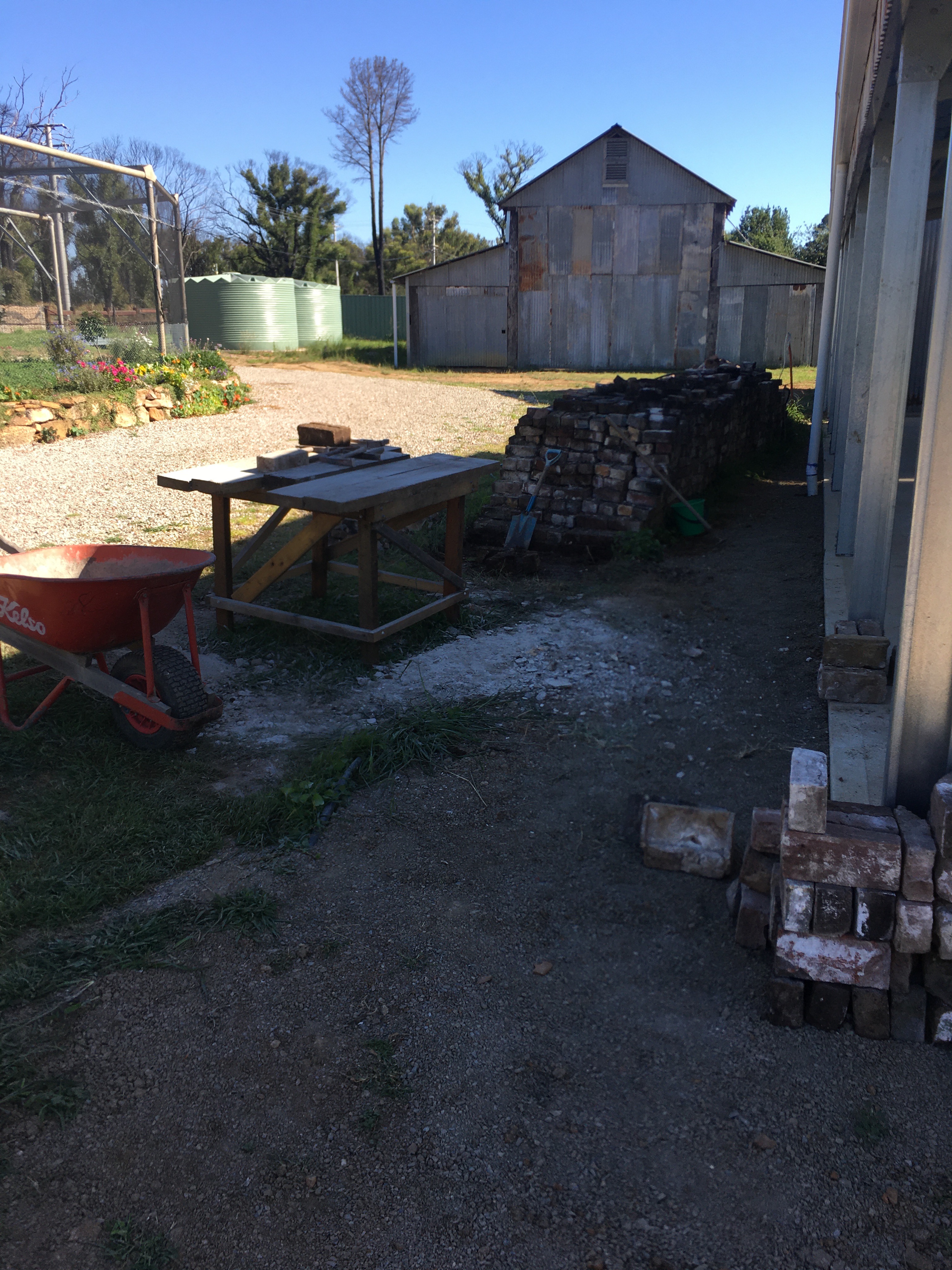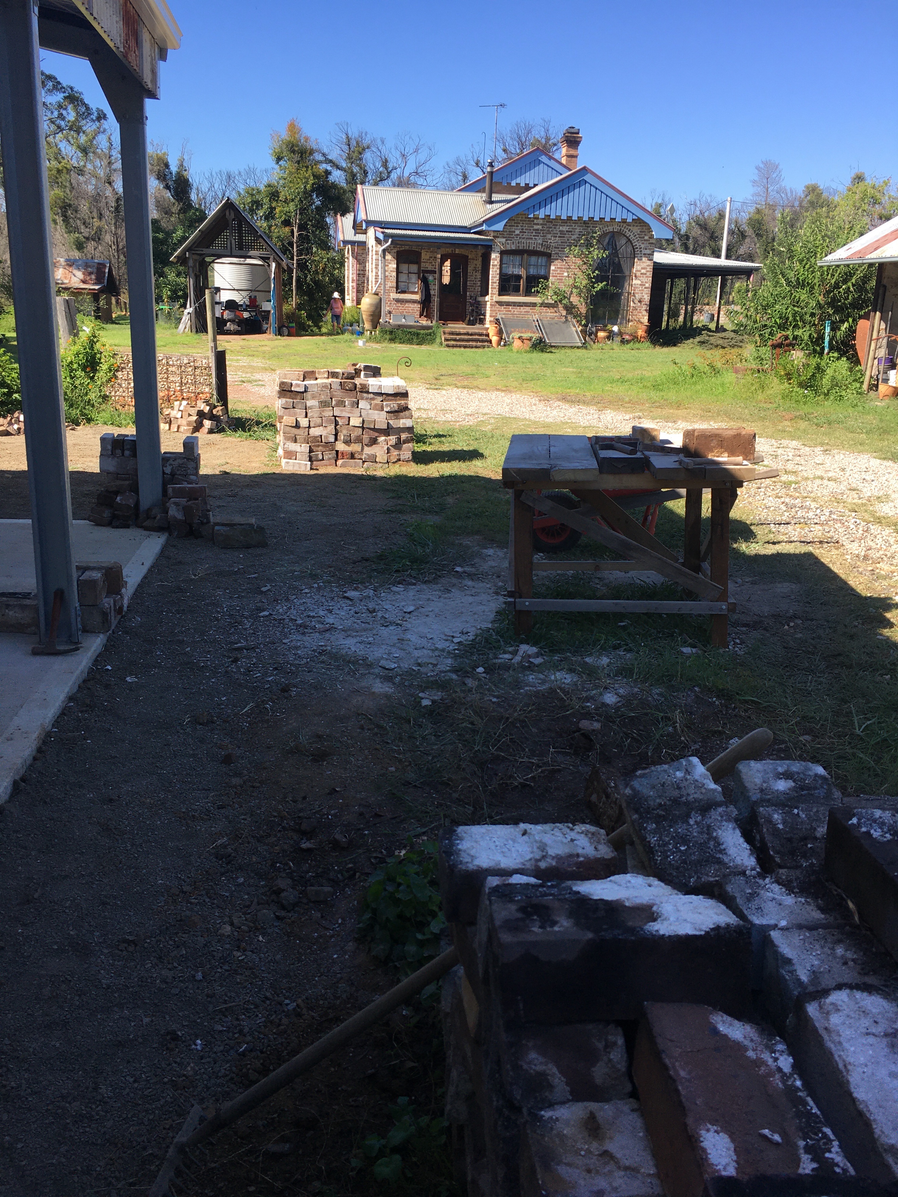 Yesterday we had our friends Ami and Kate here for the day to give us inspiration and encouragement. We managed to work most of the day, out under the portable gazebo shade cover, and got 200 bricks cleaned. A good effort for a hot day. We worked slowly and steadily with watering breaks, lunch and finally a treat of ‘Splice’ style ice creams at the end of the day around 4.00.