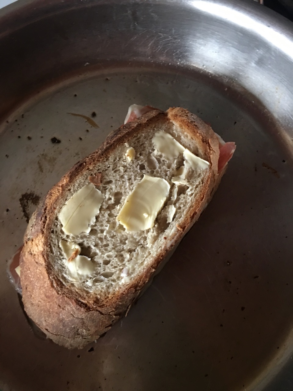 At lunch time, I made a croque Monsieur. Not just a ham and cheese sandwich, but pan fried and served hot and so warming on a cold day.